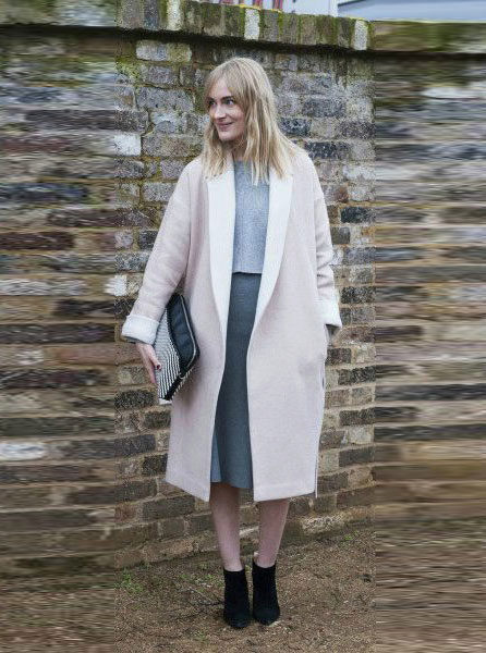 With a pencil skirt, stylists recommend wearing a classic coat with a high waistline and complement the ensemble with elegant high-heeled shoes.