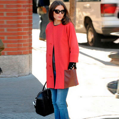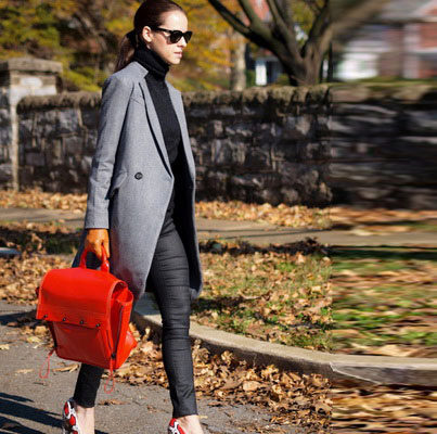 The bag does not have to have a contrasting color. You can play in monochrome, selecting all elements of the ensemble in different shades of the same color. For example, a coat of red shade "fiesta" will be in perfect harmony with accessories of coral, terracotta, carmine tones.