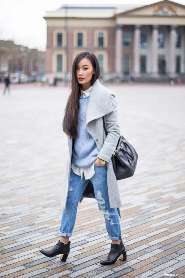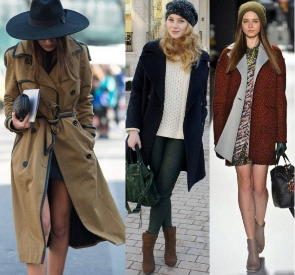 The use of boots in coats with images directly depends on the rest of the “participants” of the ensemble. If you wear 7/8 pants or skinny, feel free to wear oxfords, chelsea or loafers. When creating an ensemble with trousers “boyfriend” model, you can put on rough shoes, but in combination with a skirt or dress it is best to use ankle boots with a steady heel.