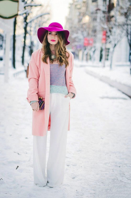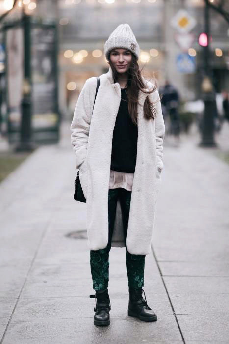A versatile hat that fits any coat is a minimalist knit. If you wear pom-pom hats, pick a coat with a straight cut. Perhaps a combination of such a cap and a coat with a hood.