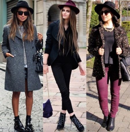 Among the current headgear, appropriate for a combination with a coat, it should be noted hats and caps. The image created on the union of a coat and hat is very feminine and in demand today. Here are some of the most harmonious combinations: