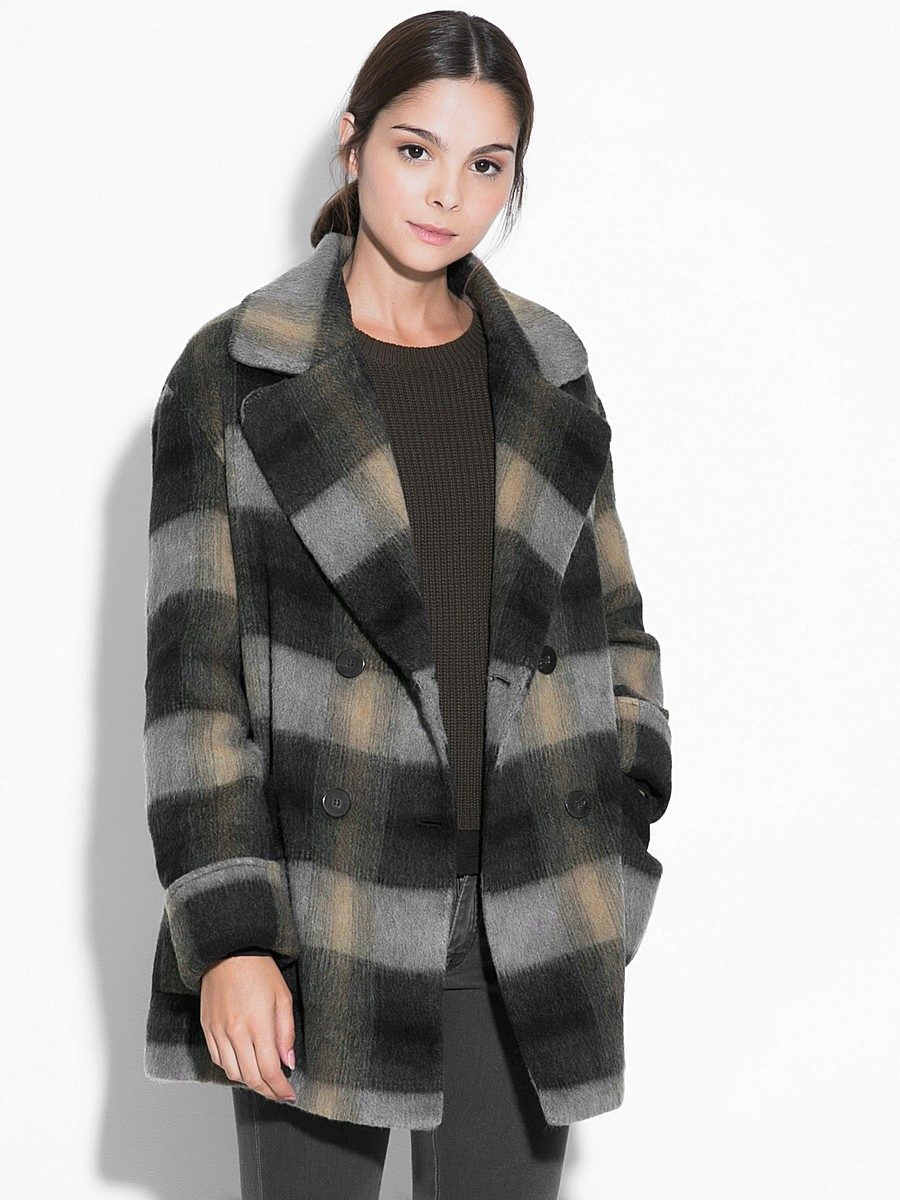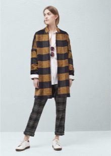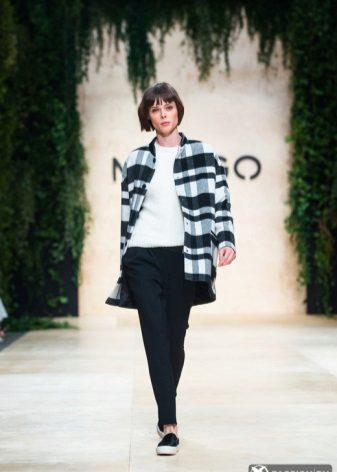 Overcoat or oversize - very fashionable style of this season. May be straight or narrowed to the bottom. Fits any shape, perfectly hiding figure flaws due to the shape. The sleeve in the models can be tailored as a raglan and narrowed to the bottom. The color is usually gray, brown, cream, black. Special piquancy to such a coat adds fabric to the cell. Such a thing is hard not to notice.