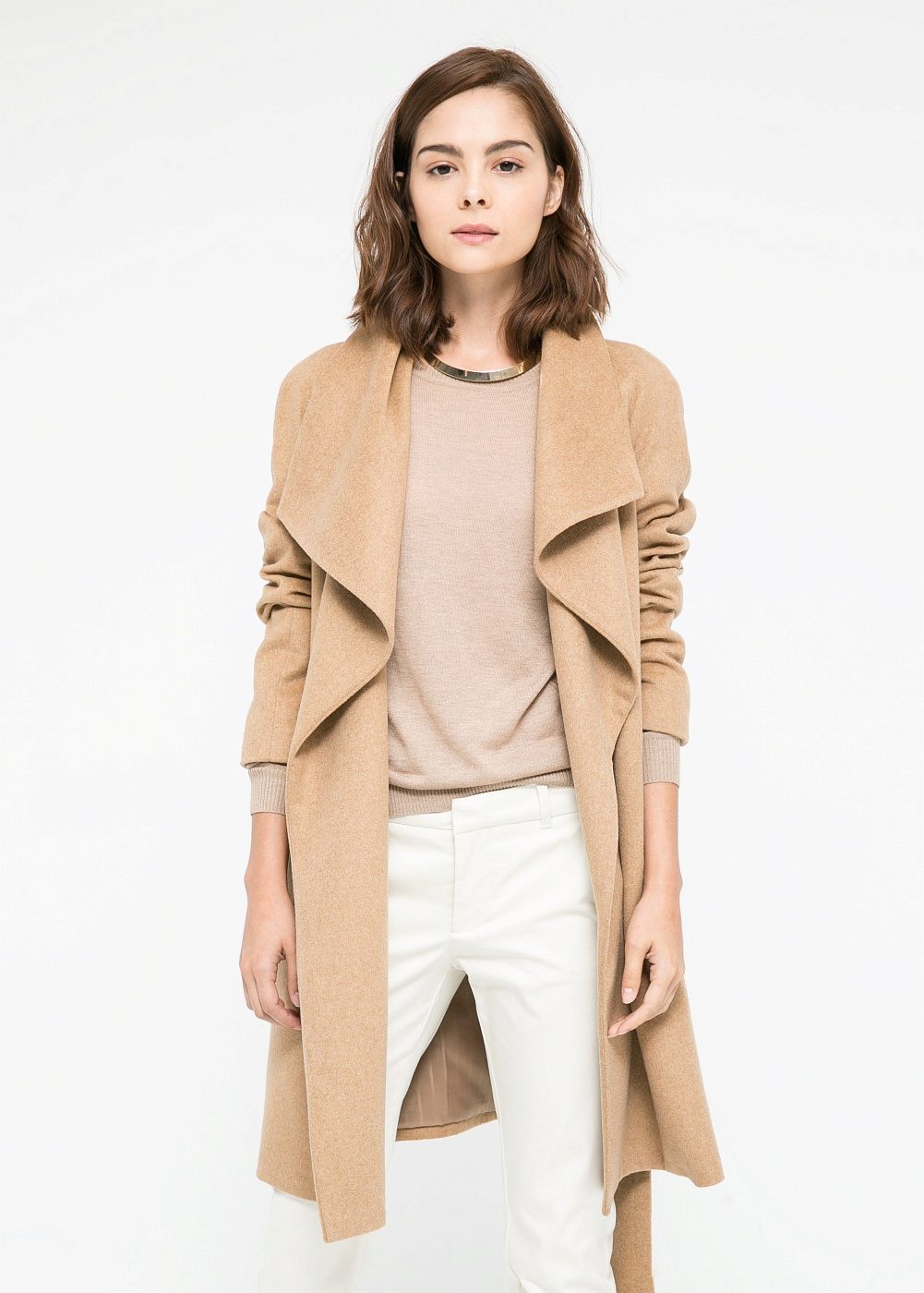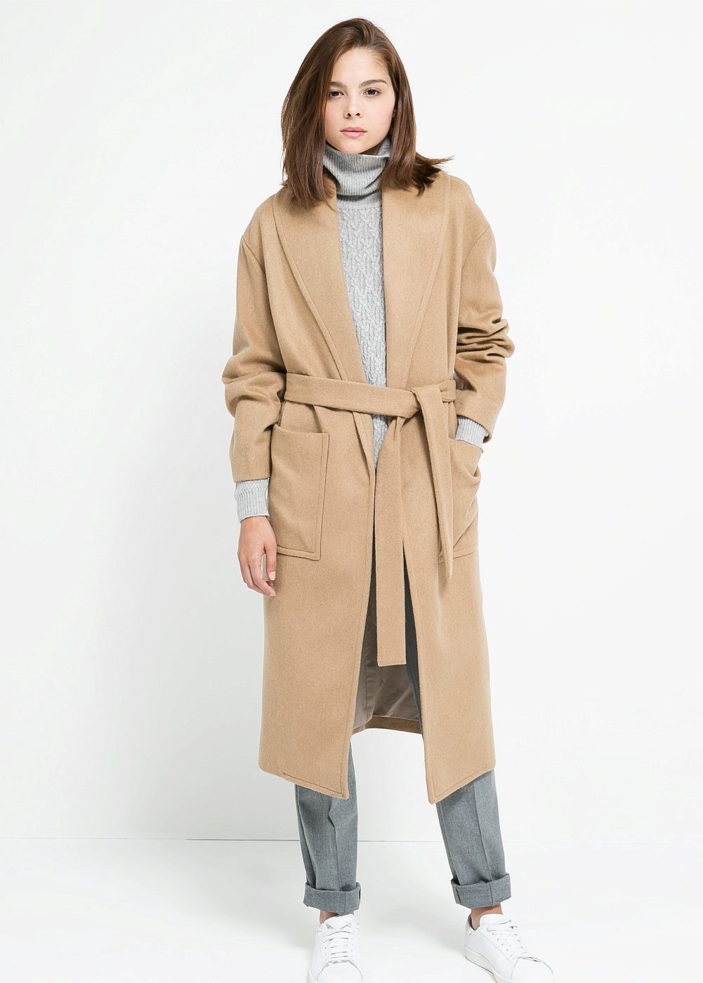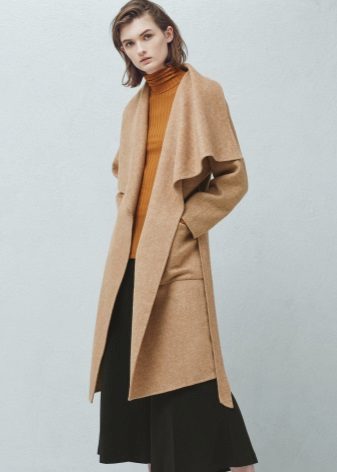 The coat-robe of the brand “Mango” is considered to be analogous to the models of the Italian brand “MaxMara”. A significant difference between them in the choice of fabric. For itself, "Mango" chose wool in combination with polyamide, which increases the durability of the product. There are models in cashmere. One of the variants of the coat - with a hood. There are long and short models.