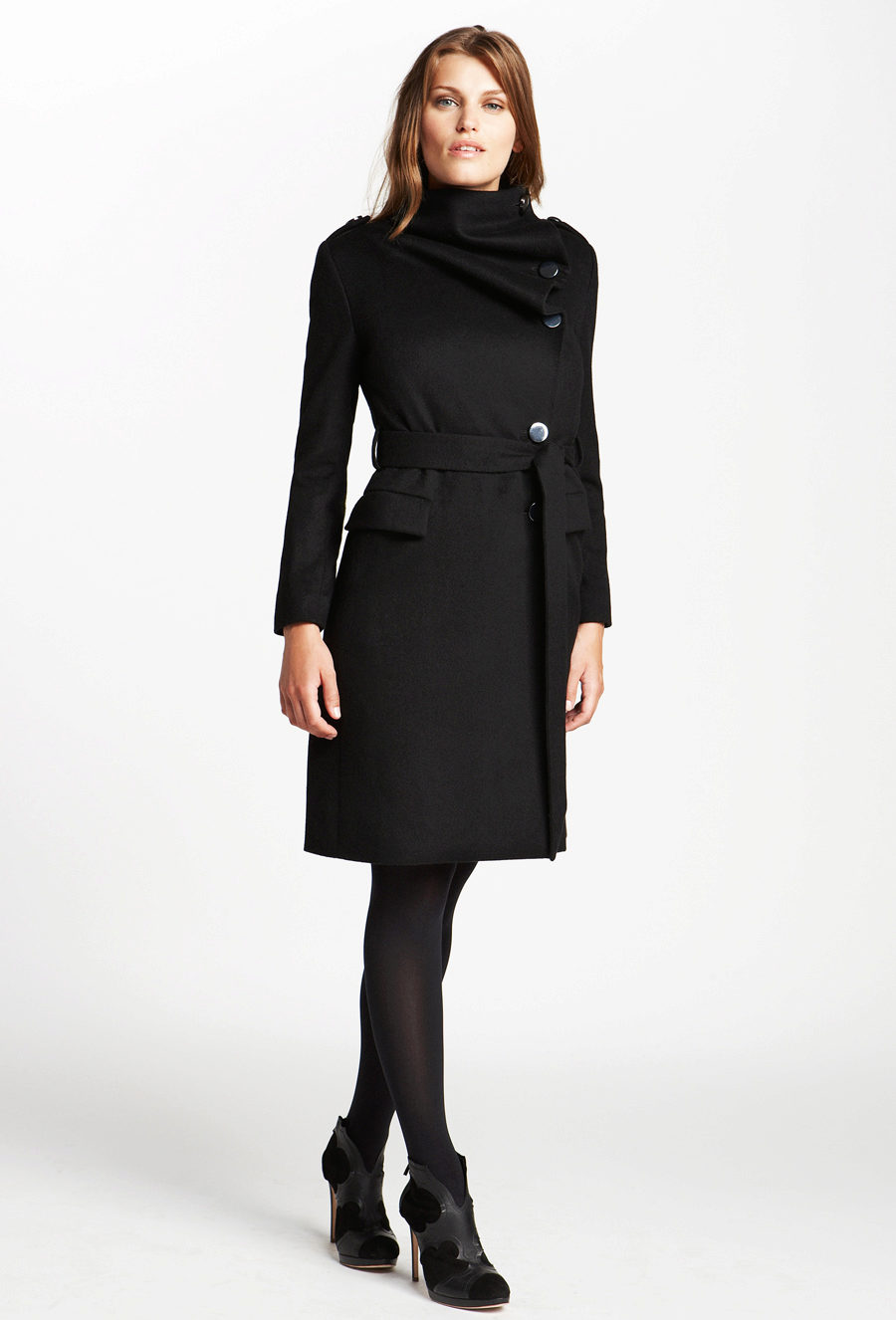 By the modern classics can be attributed, and direct coat. It is found in drape and bolonyevym performance. The length of this product is different: short, below the knees and long. It is zipped, there are models by type of a jacket on one button. The color scale of the product is represented wider than the previous style: burgundy, green, gray, brown. It will go for any shape, but there is one nuance. This style should be avoided in case of a waist problem.