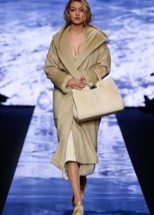 Any eminent gloss says, if you buy a coat of sand-colored color, or as it is also called - kemel colors, then by all means Max Mara. And here he is right, because this shade has become popular precisely because of the famous model 101801, which we wrote about above. The coat of sand color is universal, it looks stylish and elegant. If you want to create a basic autumn wardrobe for all times, the sand coat of Max Mara must be in it.