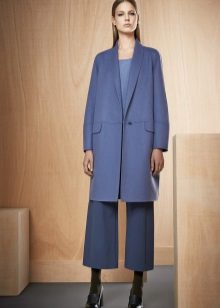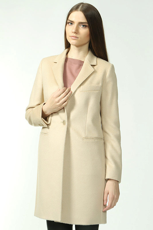 For sewing the famous model 101801 used natural wool in combination with cashmere. It has a velor texture with a short matt nap. The cashmere content makes the material very soft and pleasant to the touch. Buying a coat of this material is very profitable. It is cheaper than models of pure cashmere, moreover, more durable, because it requires less delicacy in wearing and care. The coat of this fabric is ideal for wearing in the autumn.