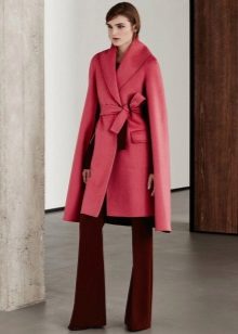 - The Cape Coat and Bathrobe Coat are now at their peak of popularity. Max Mara has a symbiosis of these two models, and it should be noted, very successful. The belt allows you to emphasize the waist, and soft lines help disguise small figure flaws. The berry hue of the coat will especially appeal to young ladies.