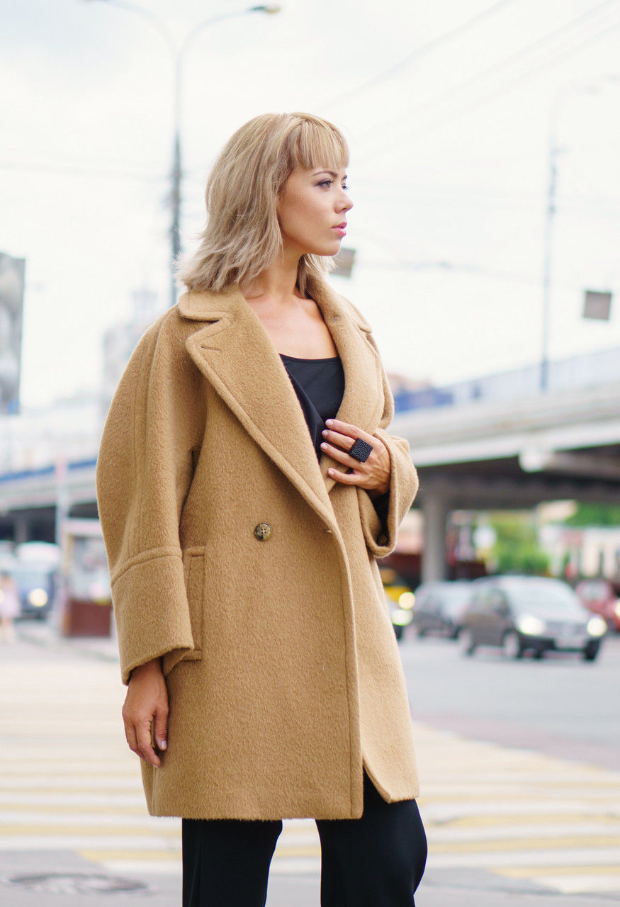 Camel color coat will be able to complement any images, it will look great both with an evening dress, and with sneakers and jeans. This is a great basic thing at all times.