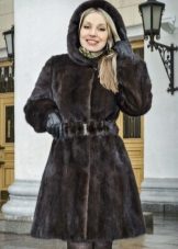 A long classic coat for ladies of any build and age. This season is very fashionable is a coat of mink fur with a very fine dressing, flowing, with cuts on the sides. In it the stand-up collar or hood is fastened on the chest with a brooch.