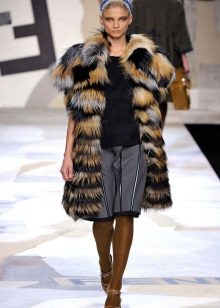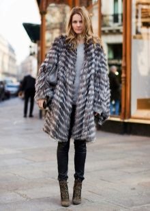 If you want to attract attention and look fashionable and original, choose artistically cut models of monochromatic colors sewn from wide fur stripes.