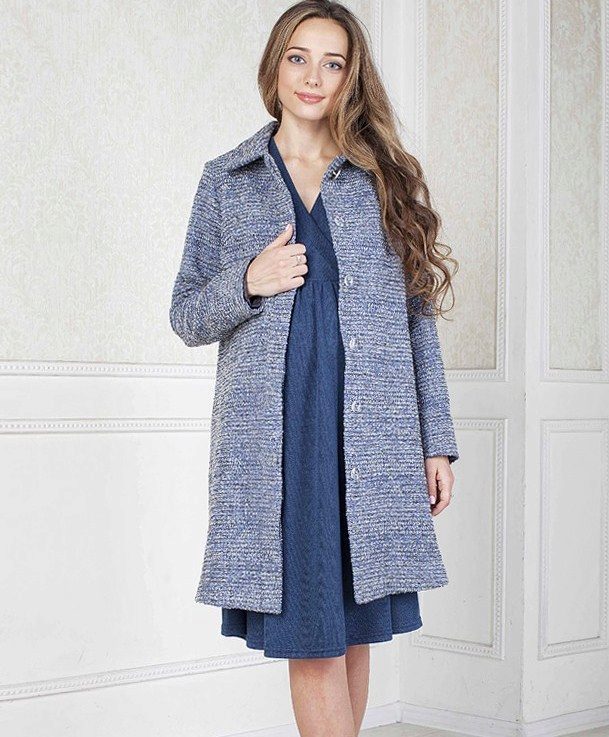 The most common model of coat for pregnant women is an A-silhouette coat, which has a tight top and extended from the chest area, giving space to the tummy, without squeezing or tightening it.