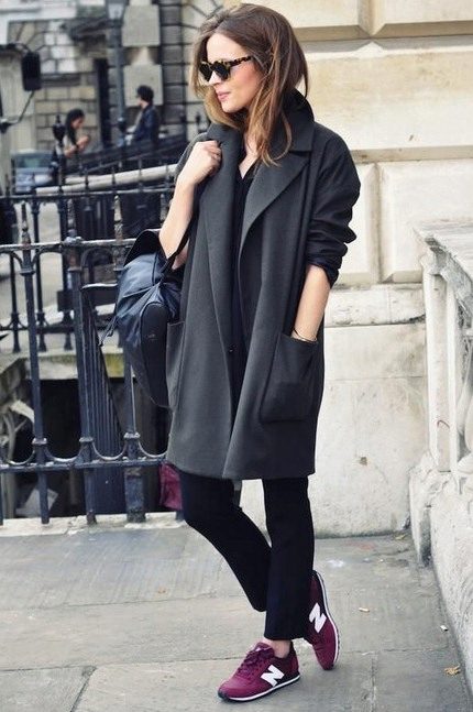 Elongated models with a flared bottom or a retro-style coat are not combined with sports shoes, sneakers and shoes, but they do allow high boots with a flat sole.