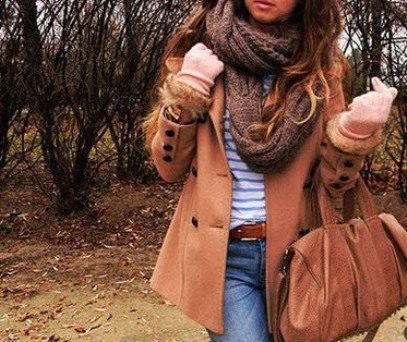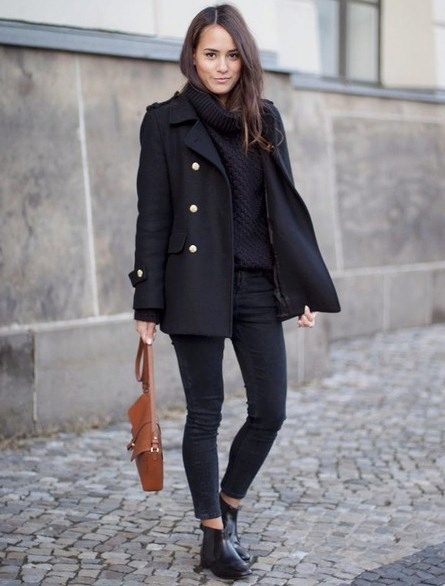 Peach color woolen coat is a great autumn option. In combination with black jeans, blouse and ankle boots the image will be harmonious, without excesses. And the details in the form of a bag and black gloves will be a worthy addition.