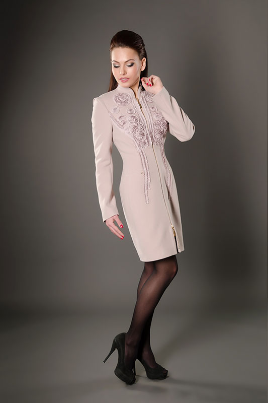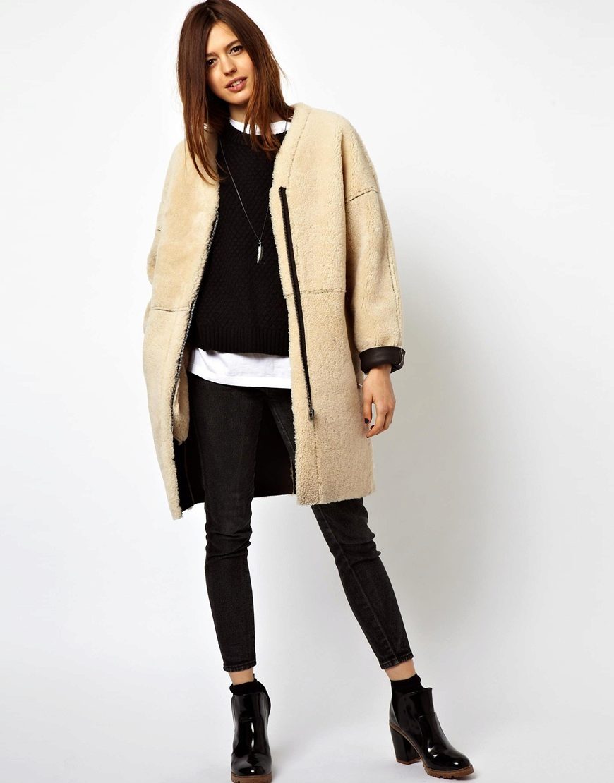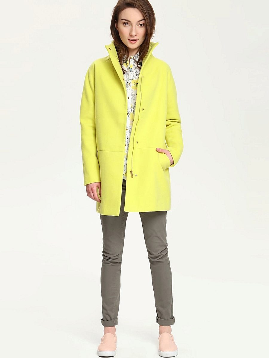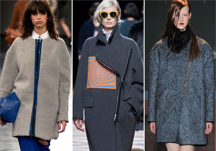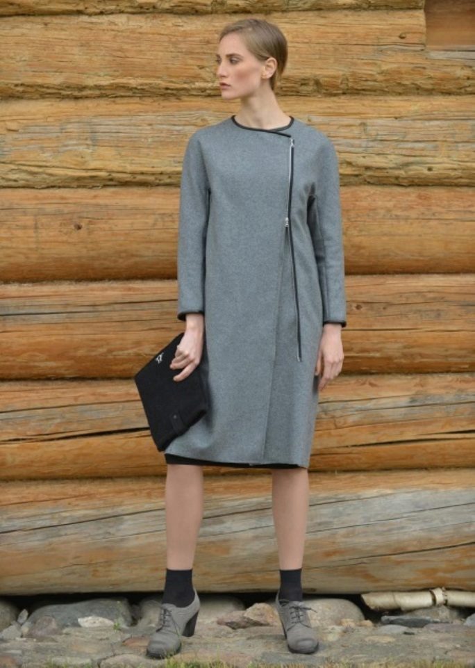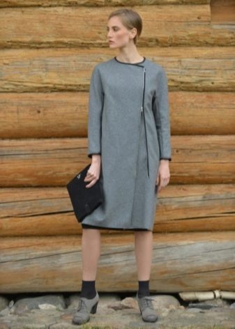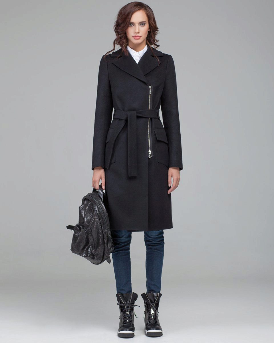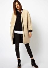 Lightning, with all its external simplicity, can beat the style of a coat and give it an extravagant look. Such clothes look modern and informal. Under it you can wear an office dress, jeans, various pants, skirts of different lengths.
