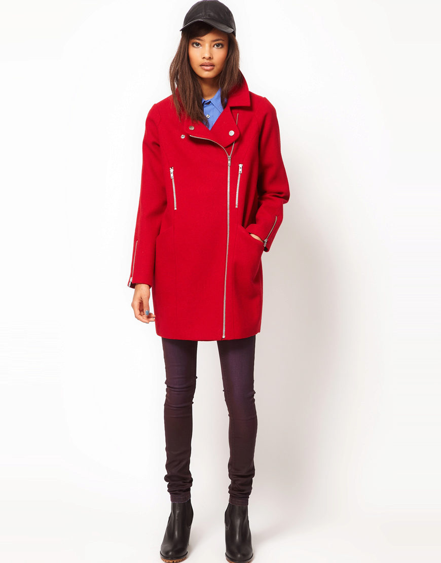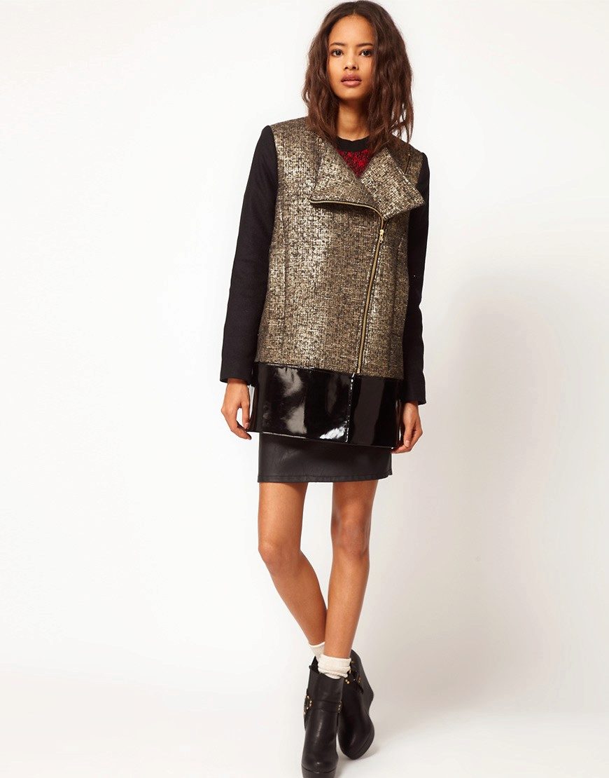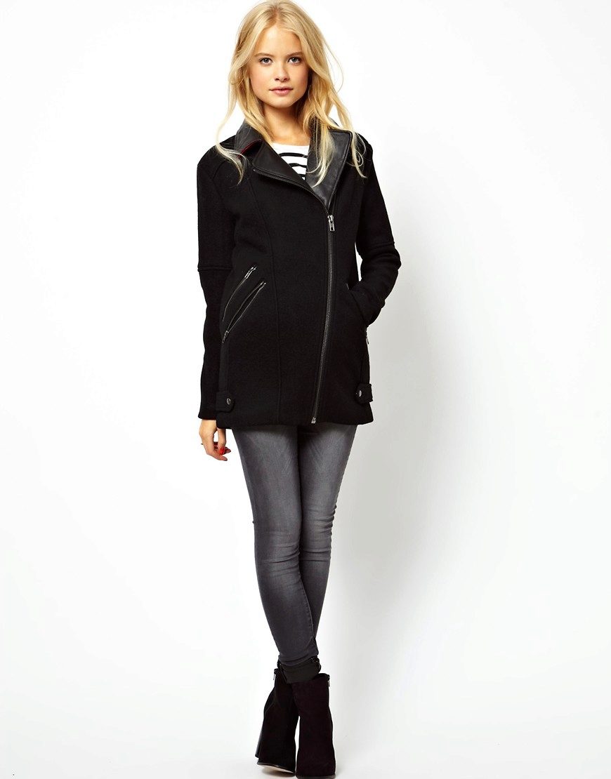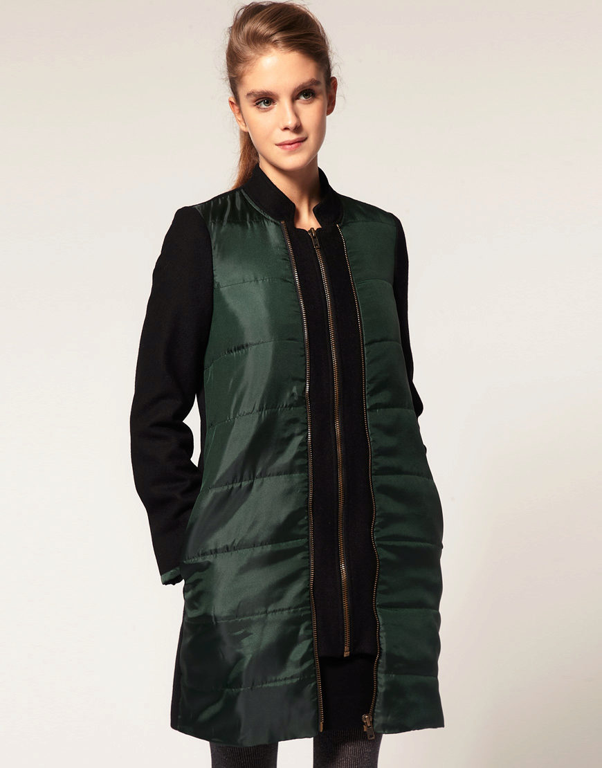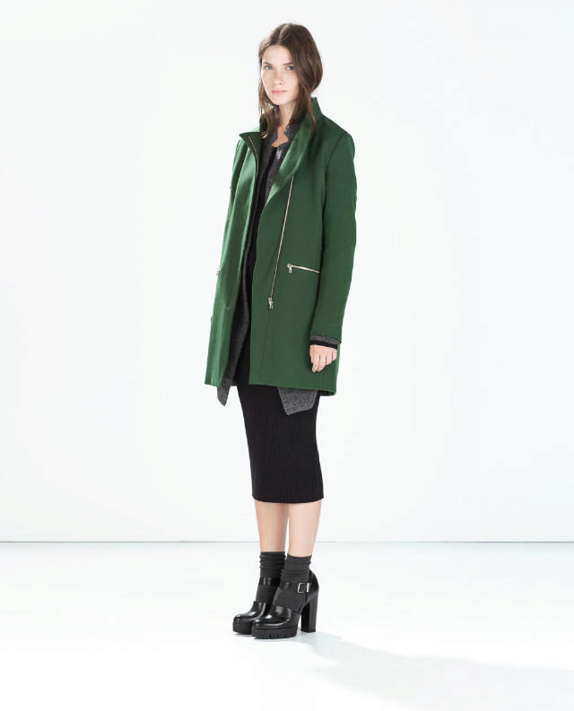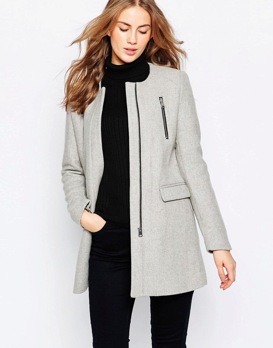 Lightning, with all its external simplicity, can beat the style of a coat and give it an extravagant look. Such clothes look modern and informal. Under it you can wear an office dress, jeans, various pants, skirts of different lengths.