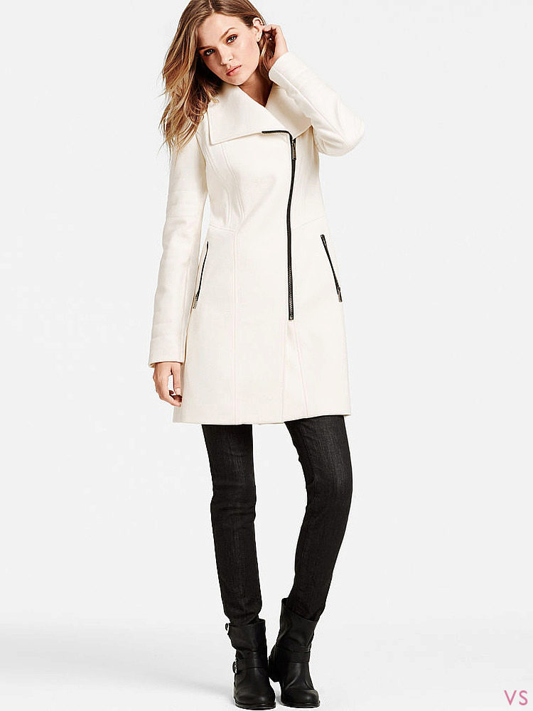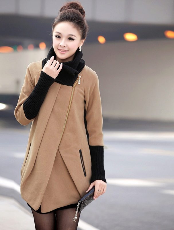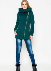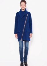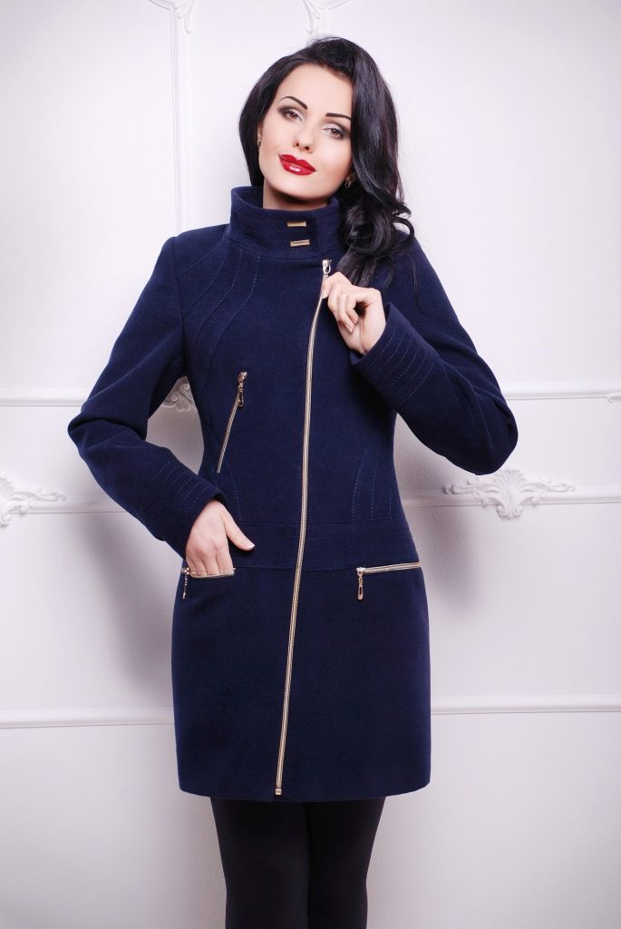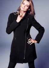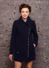 Oblique zipper on the coat is also a common option. For the classic style, this use of the fastener only played in his favor. With strict forms, the model acquired novelty. Designers in search of new images offered to use double lightning. These parallel lines added a coat of originality. Models may have a stand-up collar.