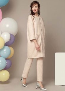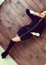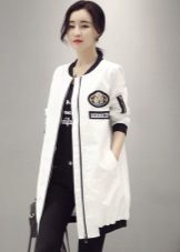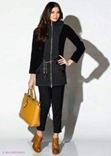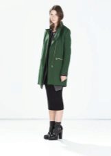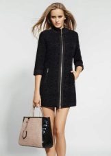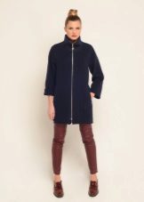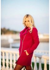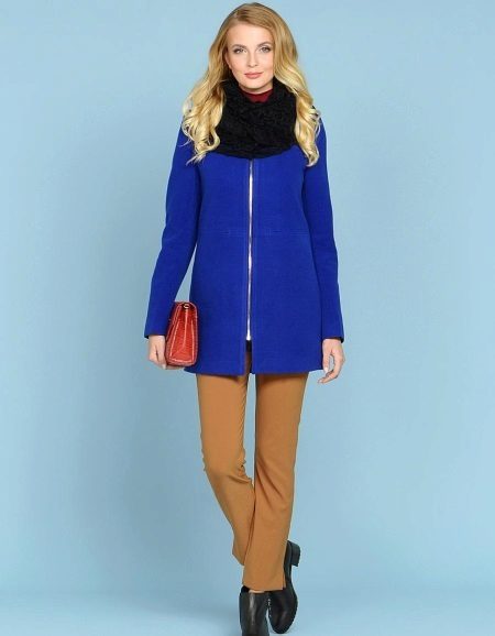 Coat with a zipper combined with different types of clothing. Most often under it wear trousers and jeans. To enhance the sporty style sneakers or sneakers are selected. Shoes and ankle boots on the platform are suitable for casual style. For a business style, you can wear a sheath dress or a straight-cut office skirt for such a coat. This combination will look very good with a straight coat and trapezoid-shaped clothing. To him you need to choose a bright and contrasting scarves or shawls. You can use a scarf and cashmere stole. This will revive the image.