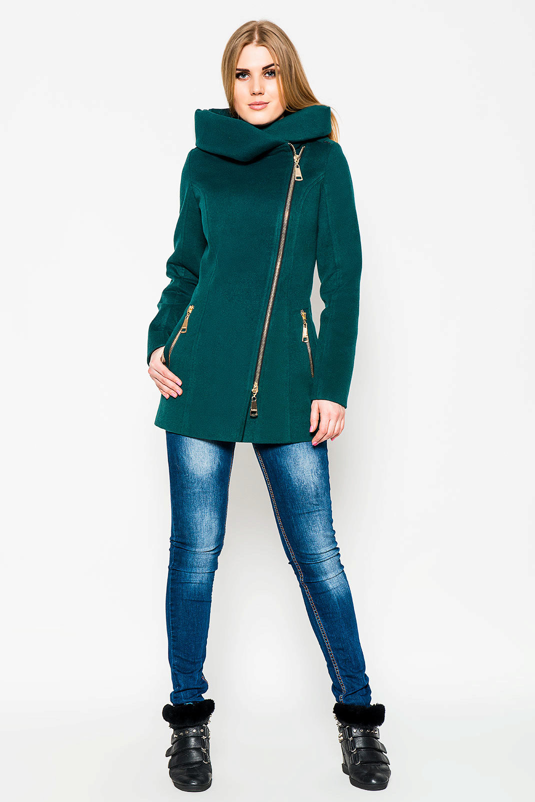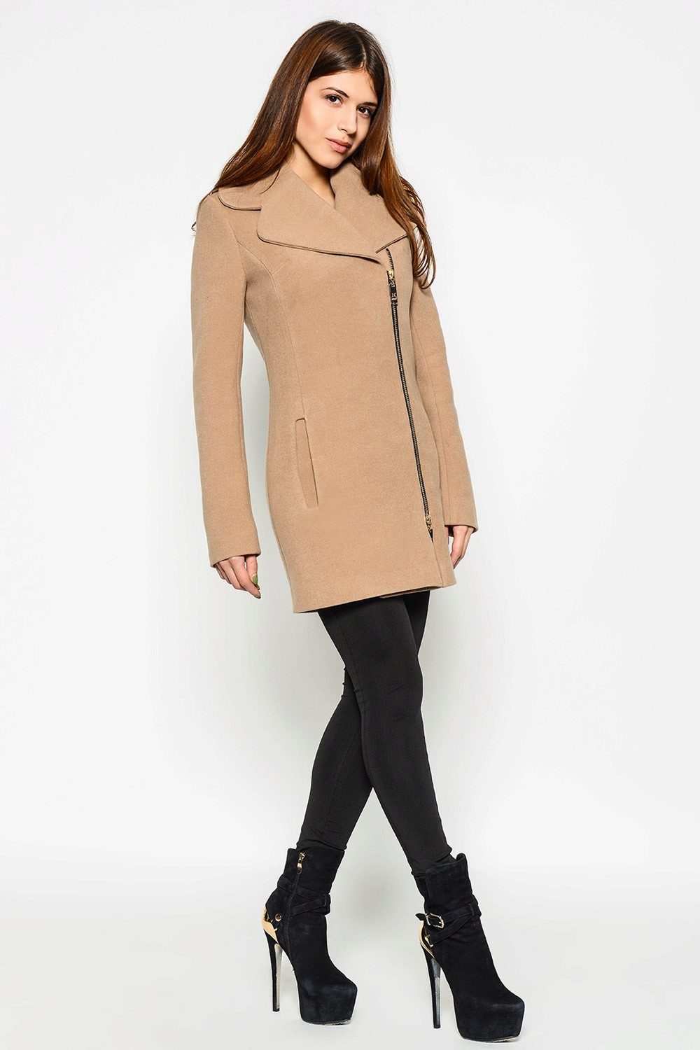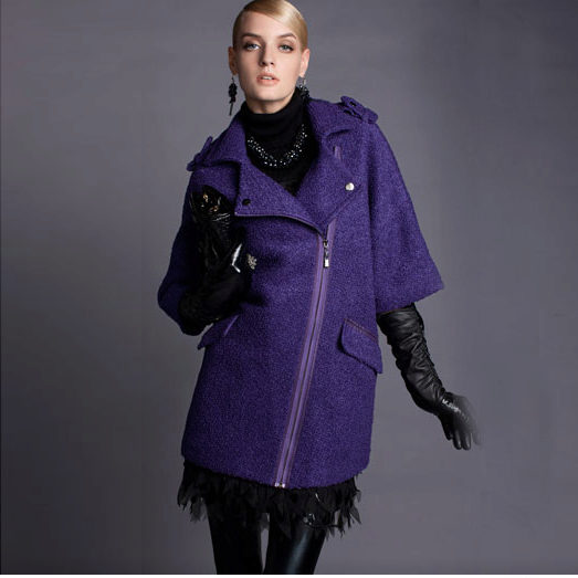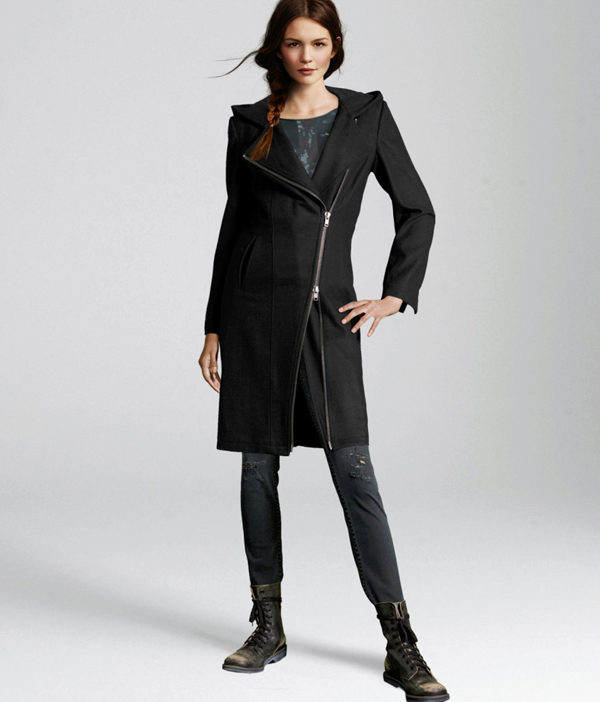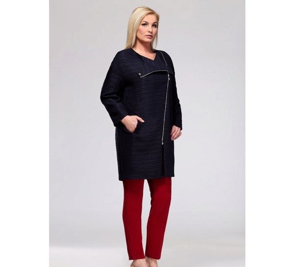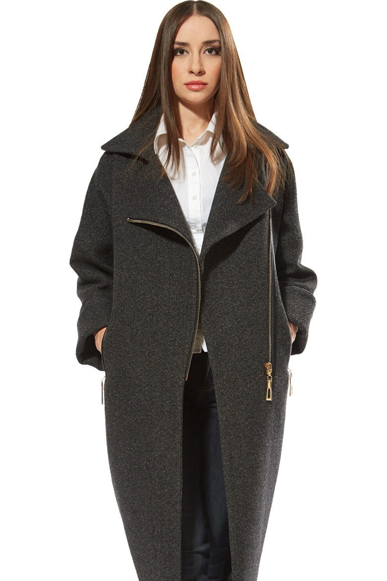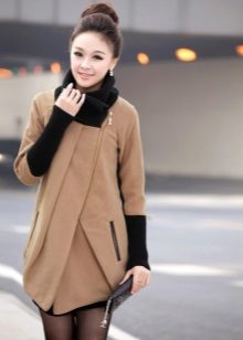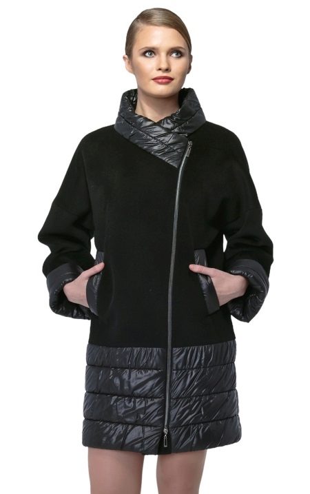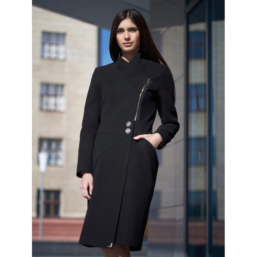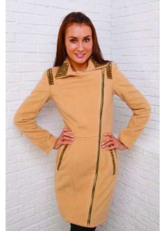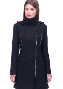 The most prominent representative of such outerwear is a coat with a slanting zipper. Such an asymmetric approach allows us to bypass the main problem for many women: to divert attention from the figure. Gold and silver zippers soften the look of a coat of the darkest shades.