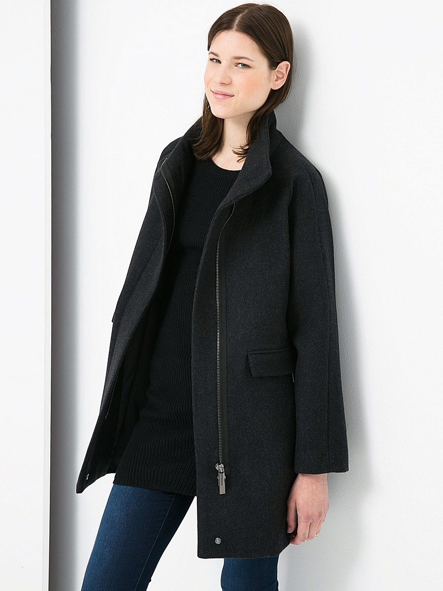 The most important design principle when using a zipper for coats is to demonstrate the stylishness and personality of the model. There are several types of styles and the most popular of them is a short coat. It can be straight and trapezoidal in shape. Combining it with other clothes is not a problem. Most often, residents of the city use under such a coat jeans and shoes with a small heel. Usually such a coat has a zipper in the middle of the product. The model can have a turn-down collar or be without it at all, leaving room for imagination with the use of scarves and shawls. Some types of short coat may have a V-neck.