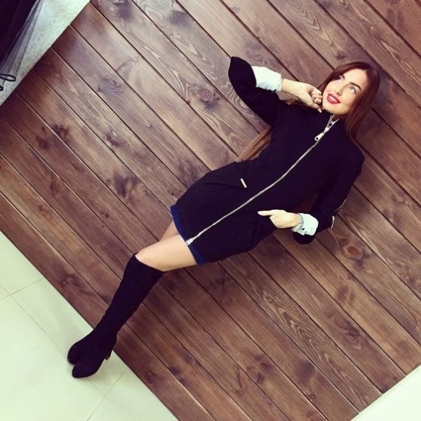An additional plus to the image was the combination of a zipper on the coat with front buckles on suede boots. Designers use the zipper not only as a functional fastener. She is an integral part of clothing avant-garde style.