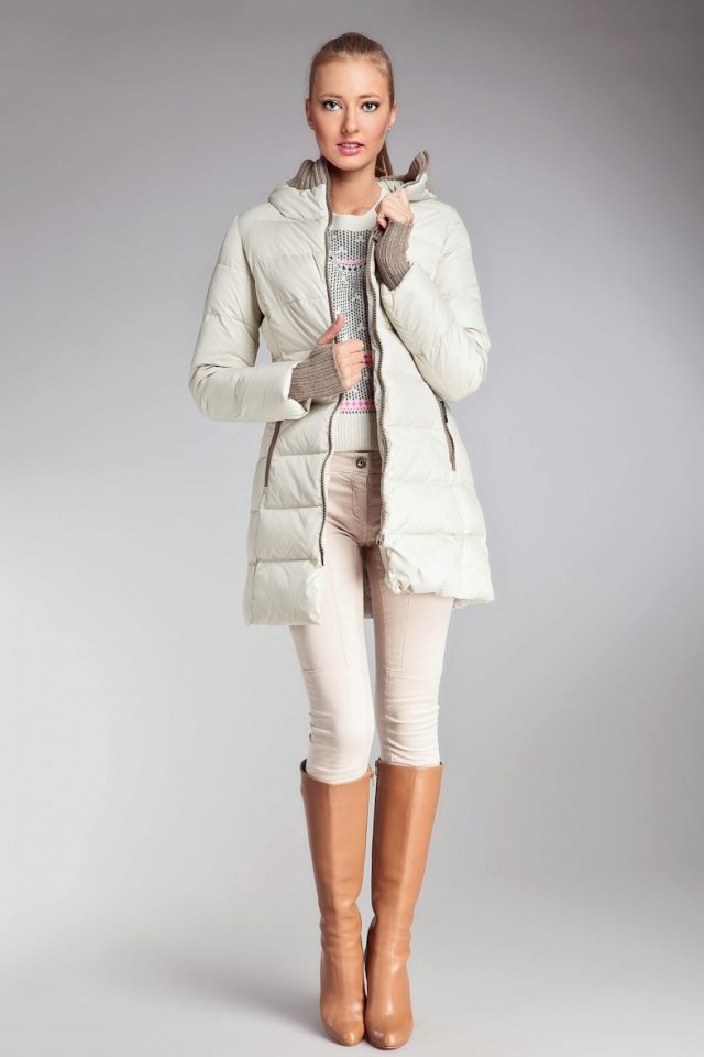 As for shoes, then the opinions of fashion experts differ. Under a warm coat on a padding polyester, some women of fashion will certainly wear high boots with heels, while others will prefer warm and fashionable wedge shoes or comfortable comfortable soles.