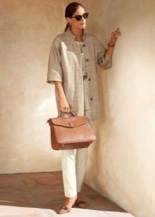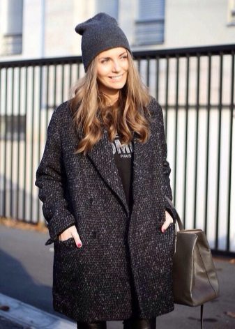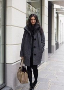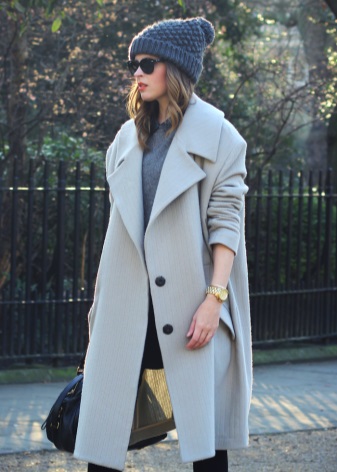 A good batch is an oversized coat with black tights or narrowed pants and a black or beige clutch bag, which makes the image stretch and smooth.