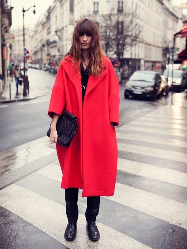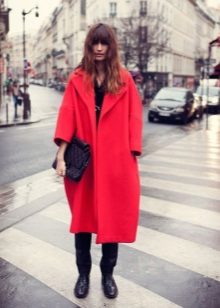 Images on the basis of a red coat in combination with a pencil skirt and pumps are very sophisticated and tasty.