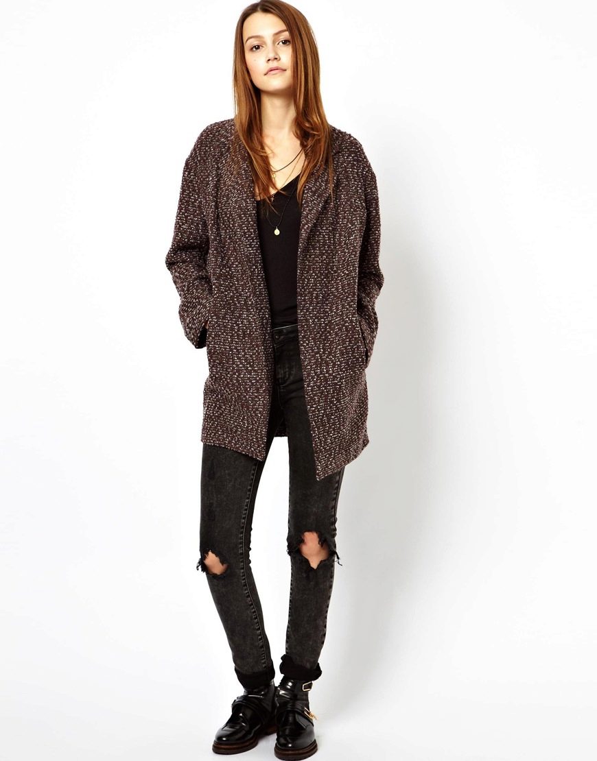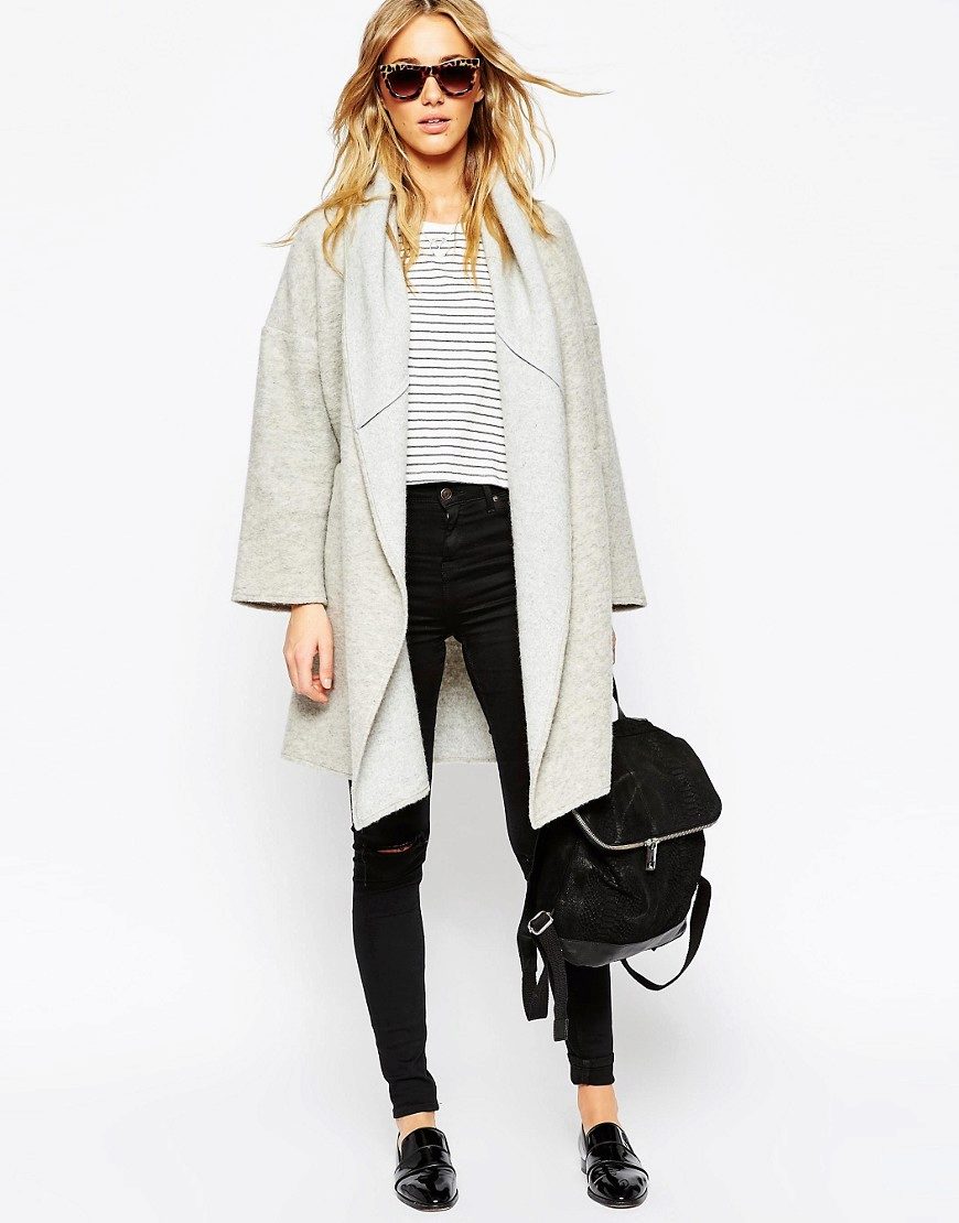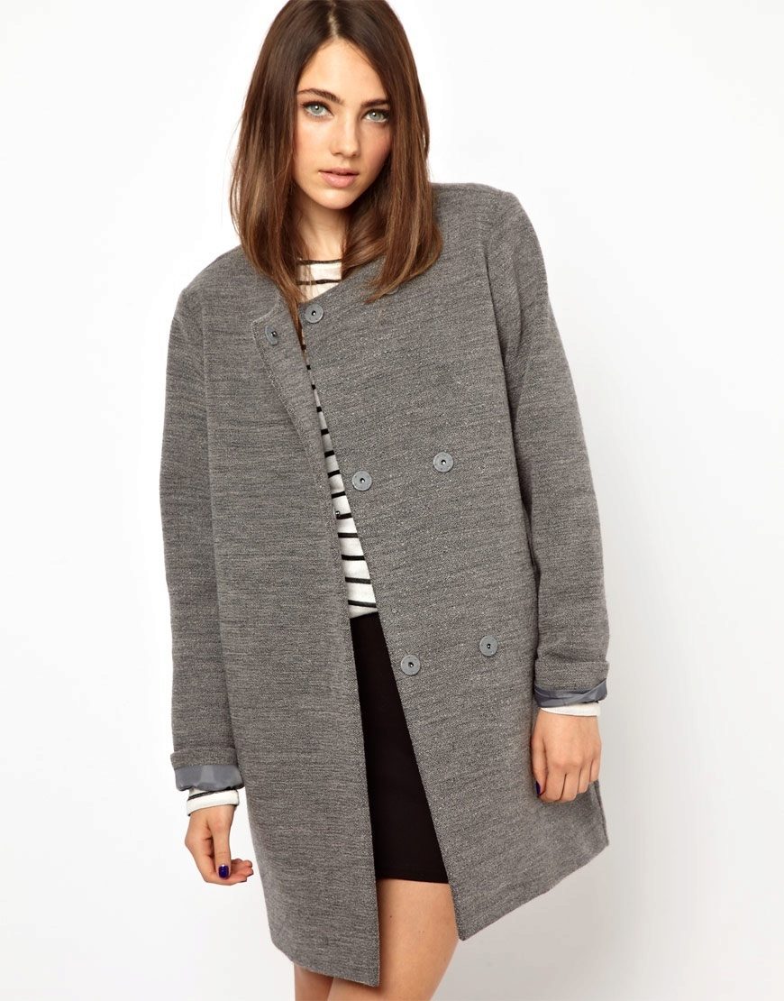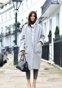 A coat made of knitwear is an ideal solution for a light walk on some warm evening. It is a comfortable, soft and lightweight material designed to be worn during warm seasons. Such coats, as well as wool, look great in gray and offer great opportunities for the selection of shoes and accessories.
