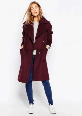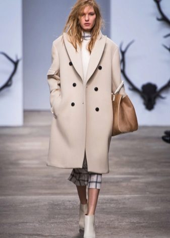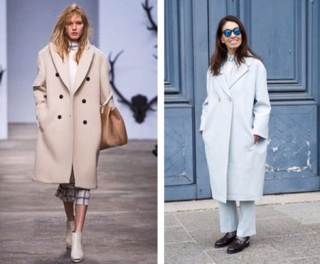 There are several models or types of oversight coats. Each of them fits a particular type of shape. For example, girls with the type of figure "rectangle" and "triangle" will suit double-breasted coats to the knee. Such a style will make the figure visually slimmer, and indeed, such a style as a double-breasted coat will always be relevant.