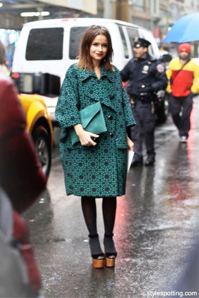 Appearing in a black coat, you run the risk of being old-fashioned and gloomy, if you don’t pick up accessories that can smooth out with restraint and the severity of black and add grunge or classics to your image of your choice. The pink coat is most suitable for a melodiously-romantic spring, when one wants to put on all the brightest, but at the same time gentle. Coats of this color are ideal for romantic natures who can wear it at any time of the year, because spring is always inside with its romance. This type of women seems to include Eva Mendez, seen in a wonderful pink oversized coat. The fashion is rapidly entering bright shades, striking in their frankness and openness.