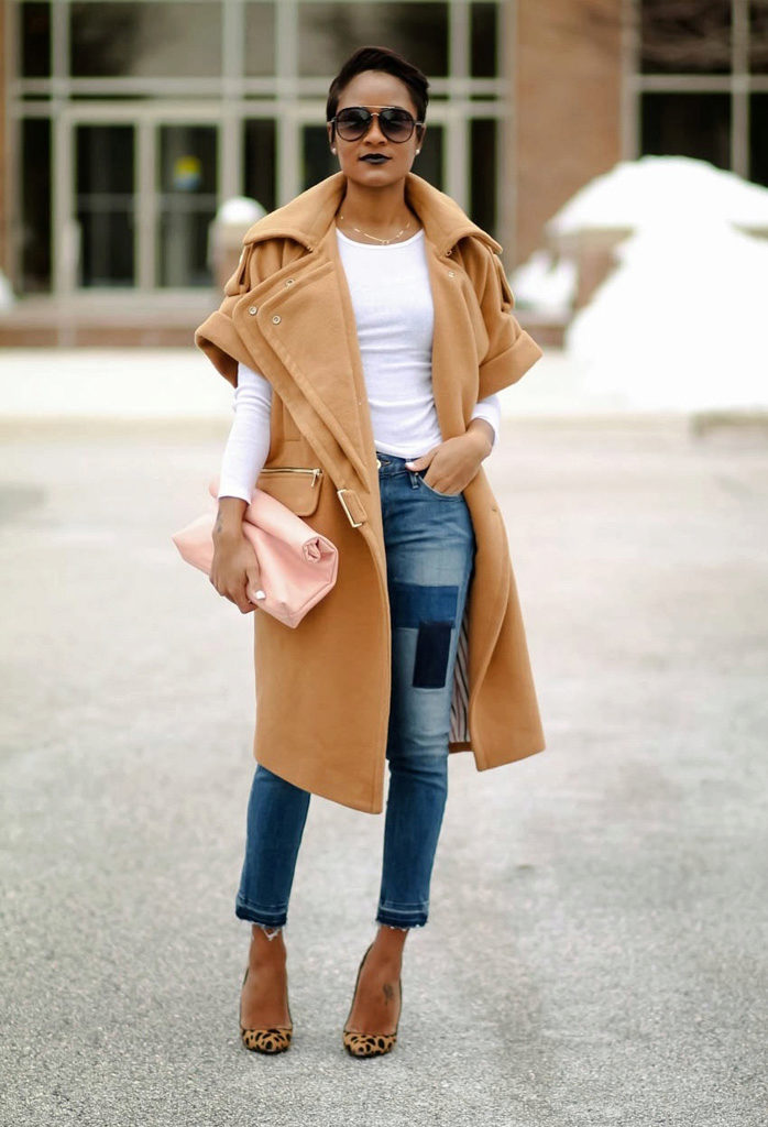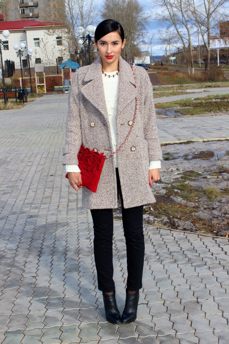 A bow with a voluminous coat automatically becomes spectacular with the proper selection of clothes and accessories. Let's stop on some especially refined and fashionable images.