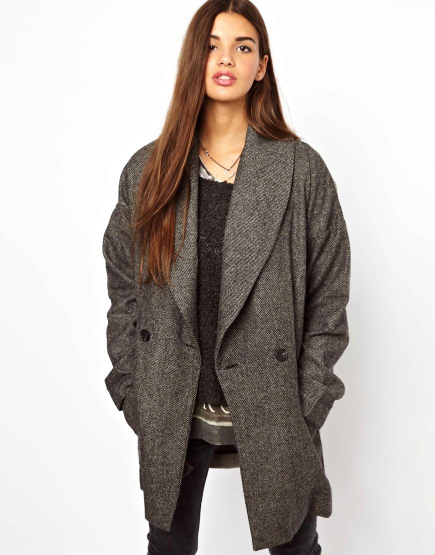 An oversized wool coat is a good model designed for the cold season, autumn and winter. Wool in general is distinguished by its excellent property to keep and accumulate heat, so it is not necessary to freeze in such a coat.Wool fabric in gray color looks very stylish, such a coat is a mast for exemplary fashionistas and readers of fashion magazines.