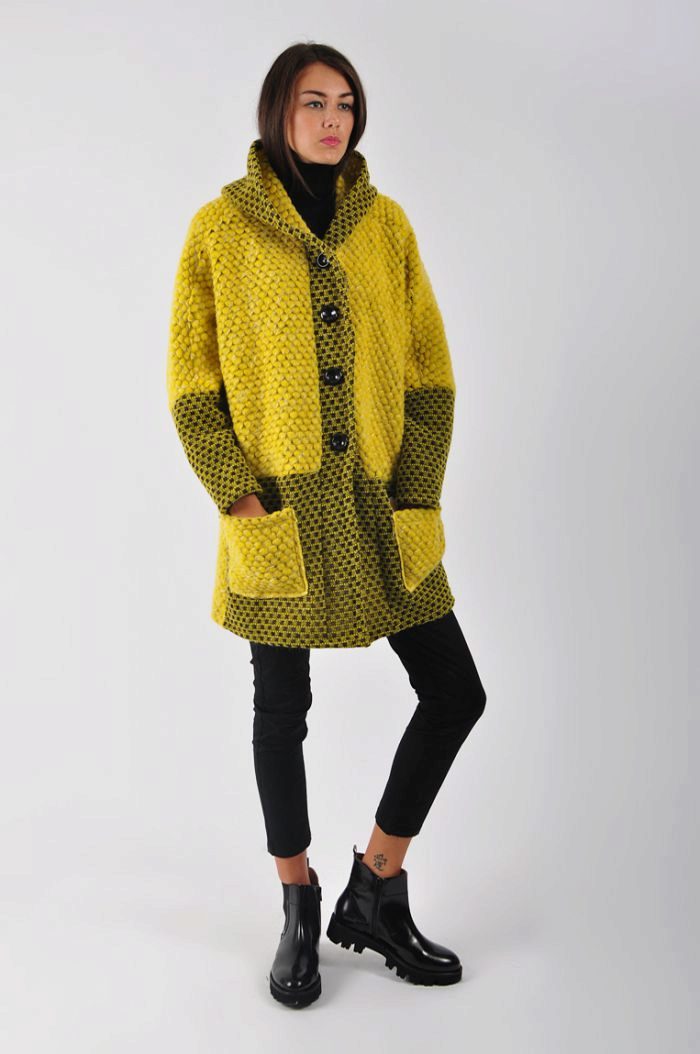 Bulky coats are also sewn from boucle. A boucle is a thick, woven, woven, plain weave fabric. The material has an interesting rough surface. Such fabric can be of two types: thick and thin; from the thick fabric of the boucle we sew our coats. When they are tailored most often used multicolor options for yarn.