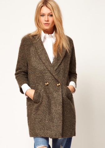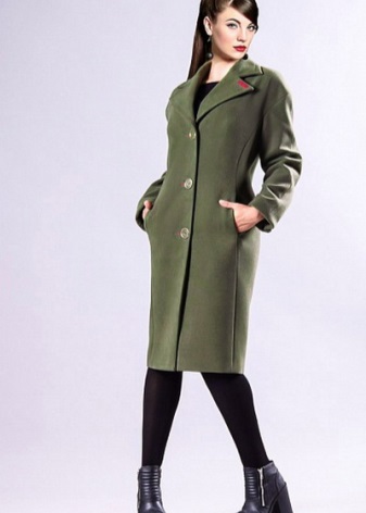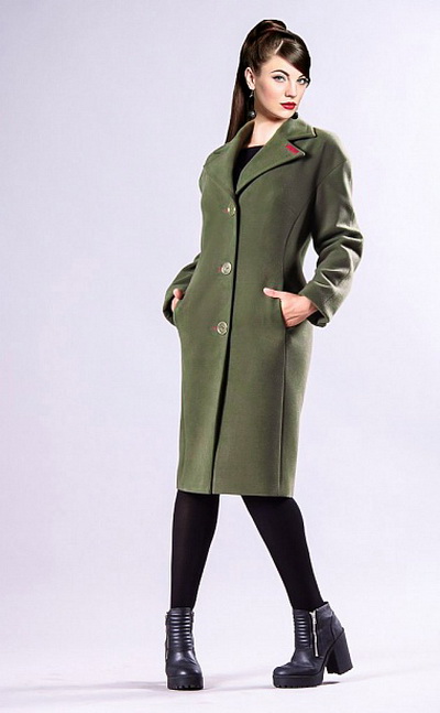 In some embodiments, collars or lapels may be missing. Sometimes an extraordinary neckline turns into a fancy fastener line. It is interesting to look double-breasted version with a high waist, made in bright colors. When choosing shoes for such an ensemble, you should pay attention to boots with heels or ankle boots. These shoes will emphasize the feminine and add to the image of pleasant shades of romance.
