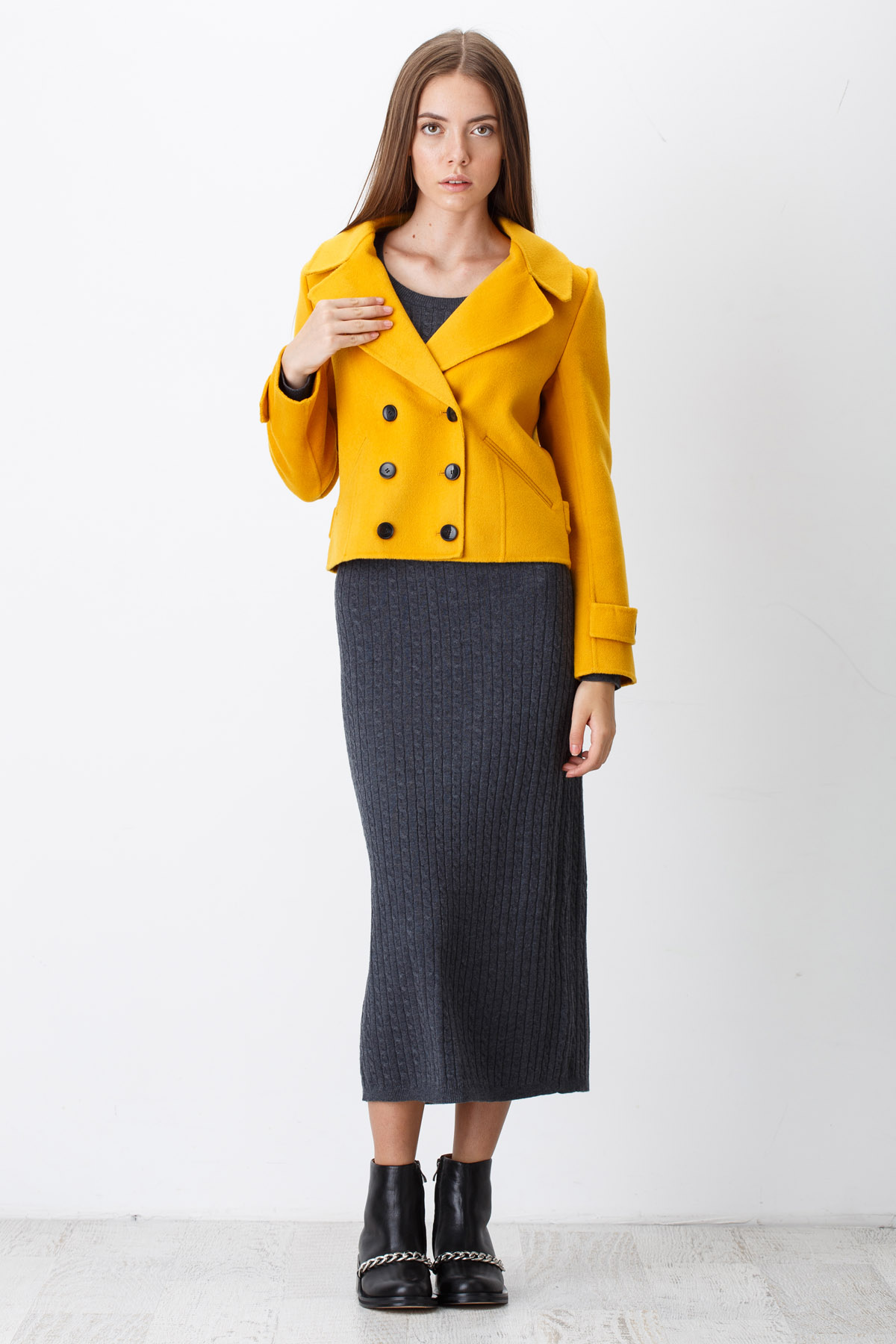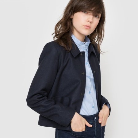 Double-breasted model visually slim and pulls the figure. Therefore, it is perfect for fashionable women of short stature.
