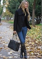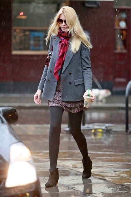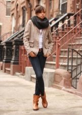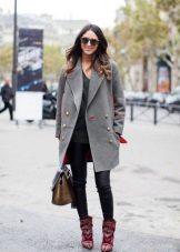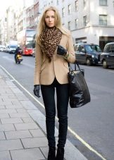 From shoes with a coat jacket look harmoniously ankle boots and any shoes with heels or boots with a flat sole, moccasins and short boots. Give elegance a light silk scarf.