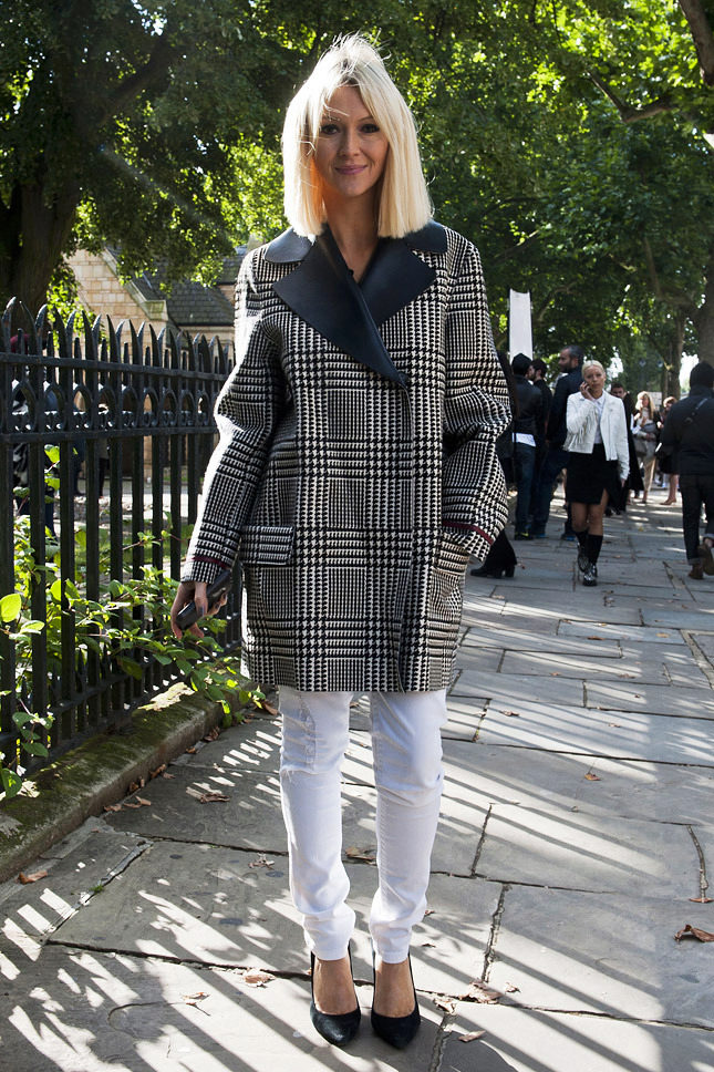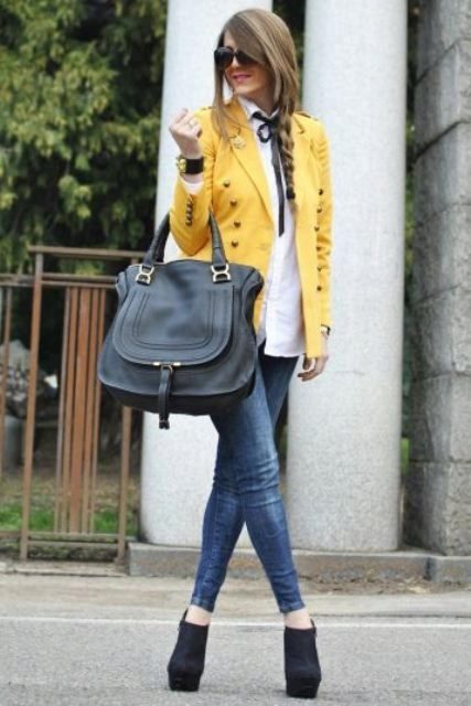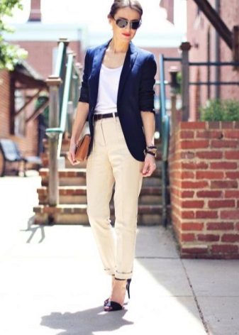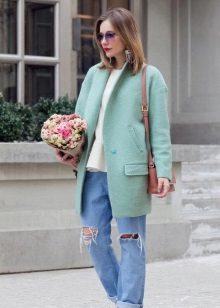 The options in the cage never go out of fashion. In the case of a coat jacket, white straight jeans and classic pumps with low heels will perfectly complement this option.
