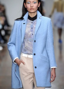 Coat jacket is shortened, the length of a classic jacket. There are models of oversight, wide cut and mid-thigh length. The straight jacket variant may be in an elongated version above the knee length.