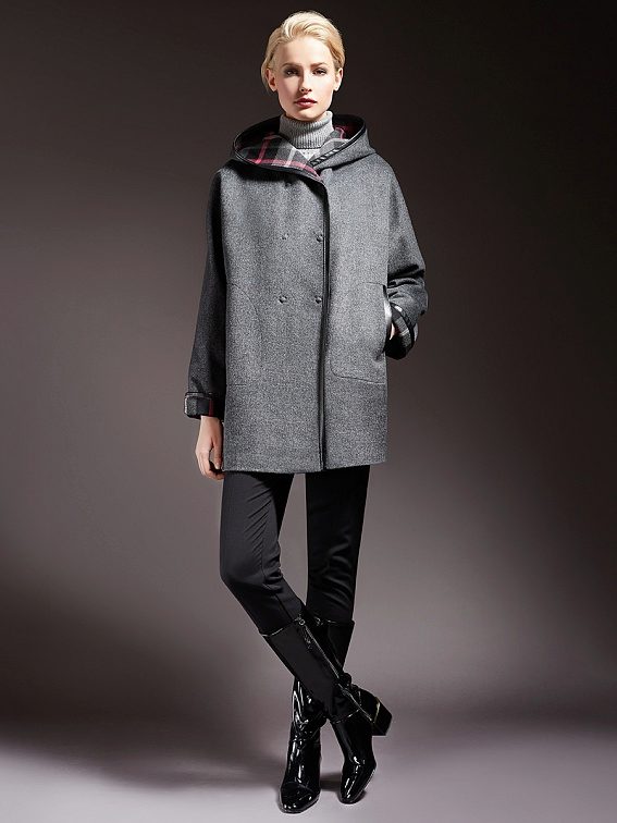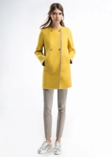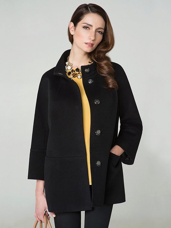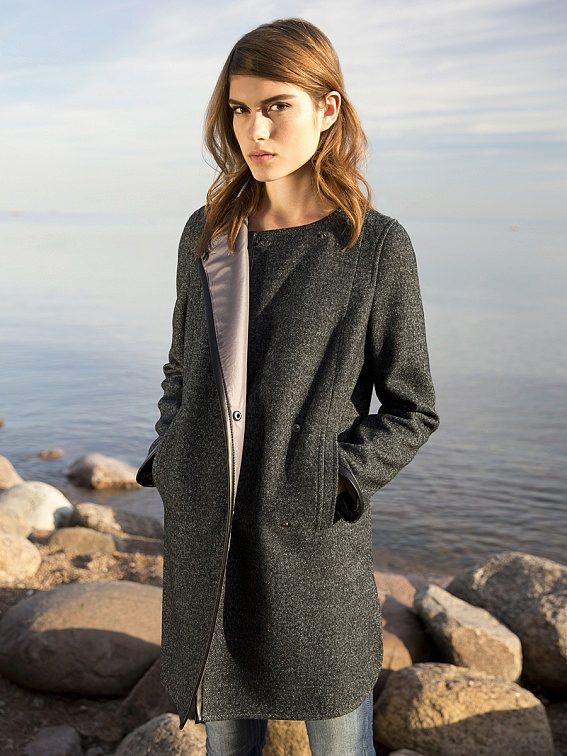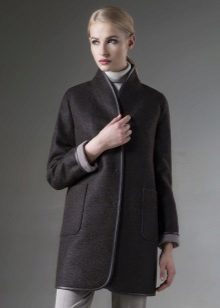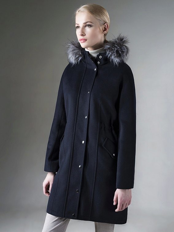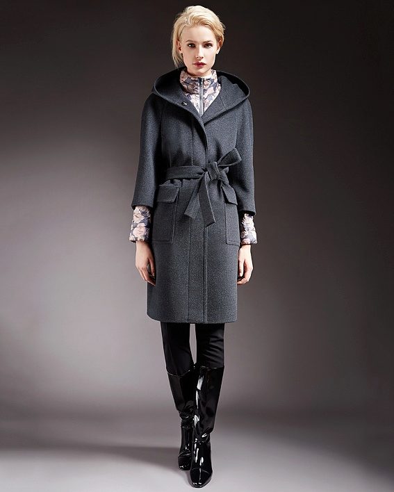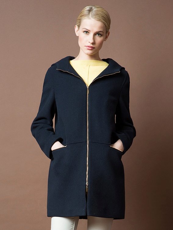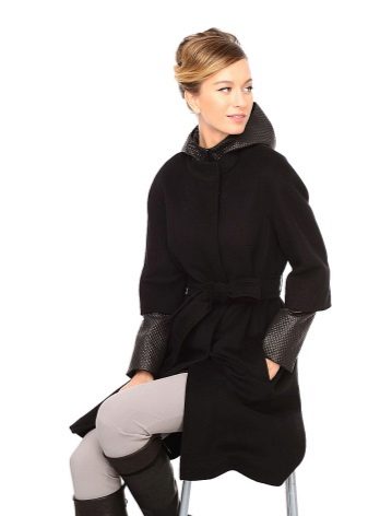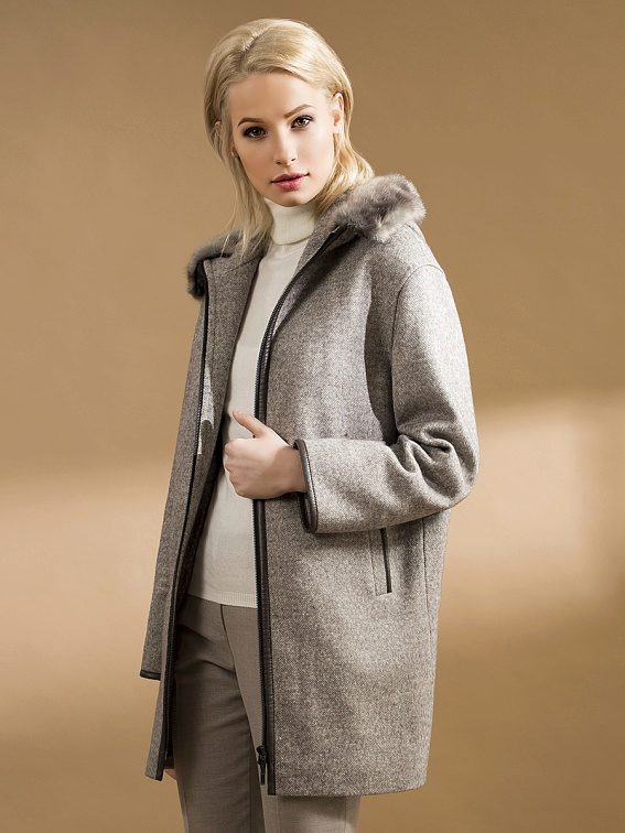 - Length slightly below the buttocks. Such models are more like jackets, but coats and finishing elements do not give them the opportunity to be called differently than a coat or a short coat. These models are good during the early autumn or late spring - when the cold was almost receding or had not yet come. An excellent solution in the conditions of changeable weather will be a model of such length with a hood - it will save from a sudden wind and help preserve the hairstyle.