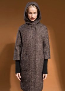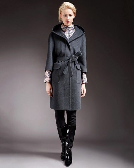 - Until the middle of the calf. Very stylish and relevant now is the length for demi-season clothing. The coat of a direct or free cut, models with a smell will look most brightly and effectively in such a variant. The hood on the coat to the middle of the calf will give mystery to your image.
