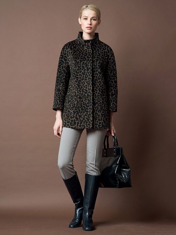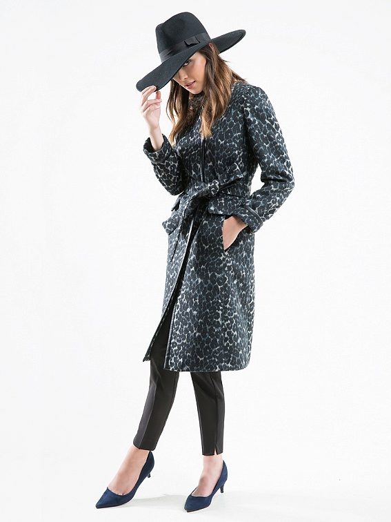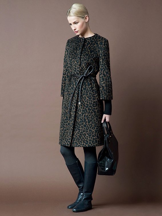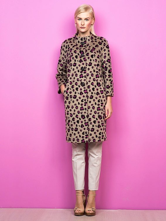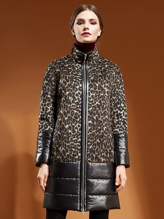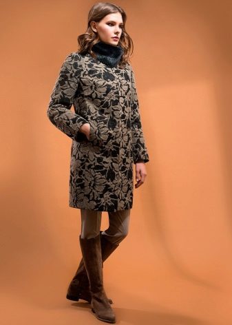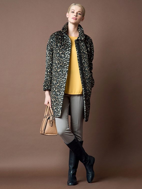 Special attention several seasons in a row enjoys an animal print. In the coat of the brand, it is applied very unobtrusively, without the use of bright colors, without preserving, nevertheless, this original idea - to convey the color of the animal. Another popular print, typical of Pomp's coat, is the cage.