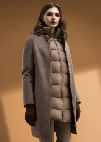 This trend has not become outdated for many seasons, probably due to its practicality. Modern women in everyday life need not only multifunctional devices, but also similar clothing. So, in one item can be combined a coat of natural wool with a vest, jacket or down jacket of waterproof materials. Such coats “two in one” will help to diversify gloomy autumn or dank spring.