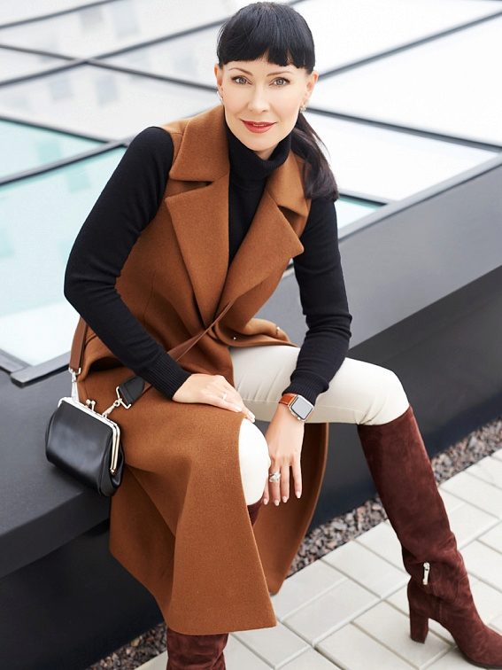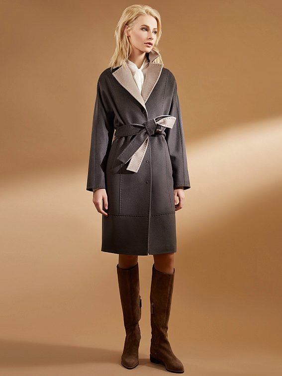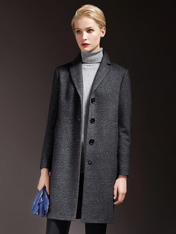 - Mid thigh. Very actual length, especially in smart casual style models. Such a length of a coat allows a woman to be reliably protected from wind and cold, but at the same time remain quite mobile, because a longer coat already limits her “flying” gait a little. This length is also good because it is suitable for any age and style.