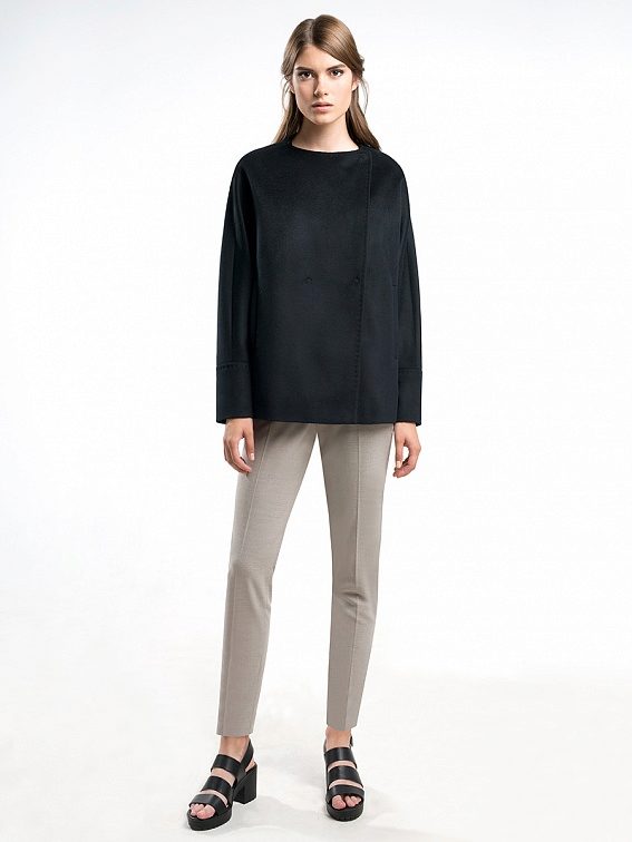In terms of the colors used, Pompa is very conservative. Monochrome coats of the brand are presented in black, white, several shades of gray, beige, as well as burgundy, brown and cream tones.