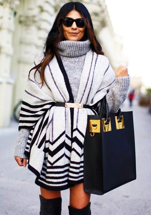 Complete with a poncho, boots or high-heeled boots, ankle boots, and shoes look beautiful and elegant.