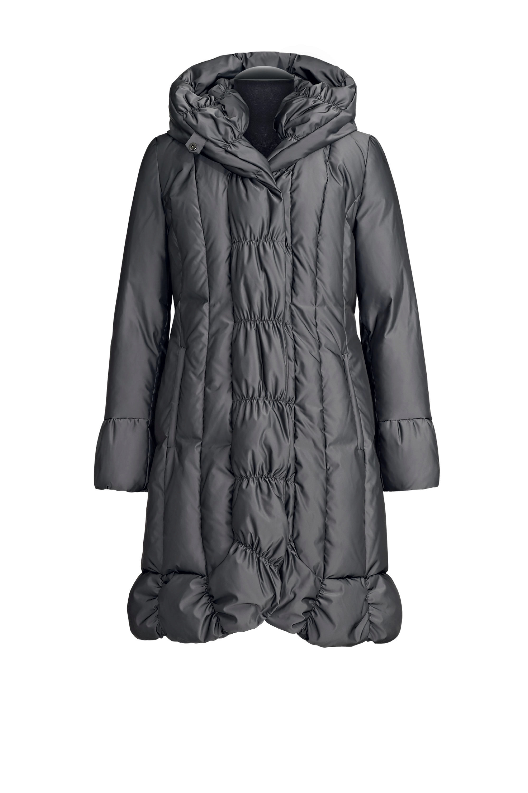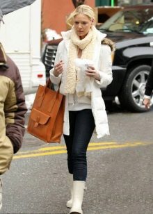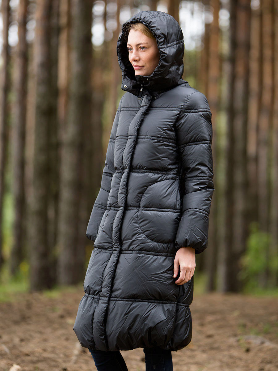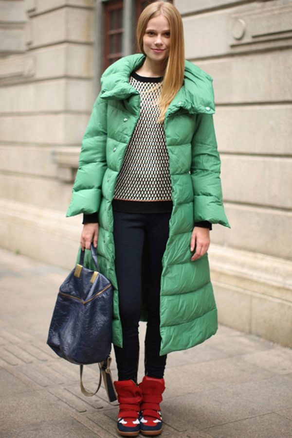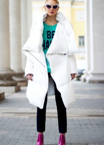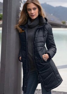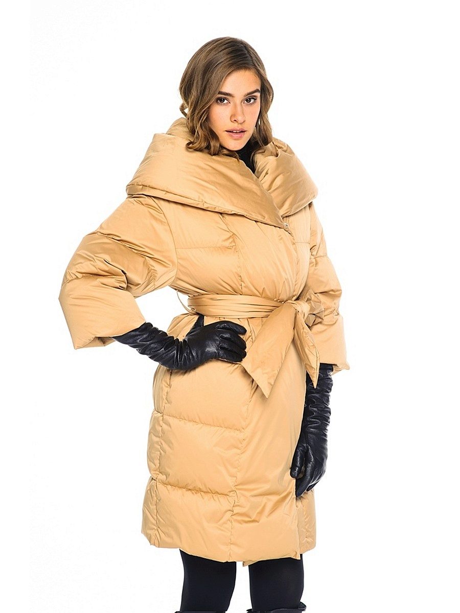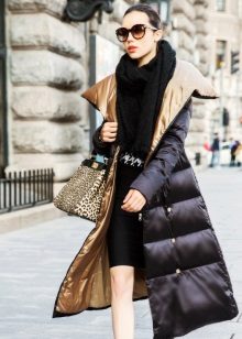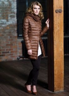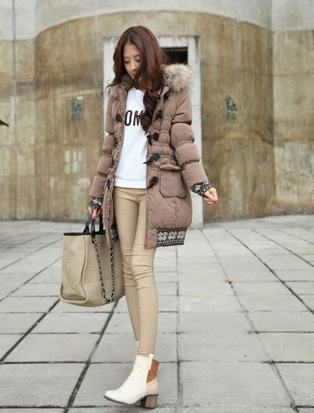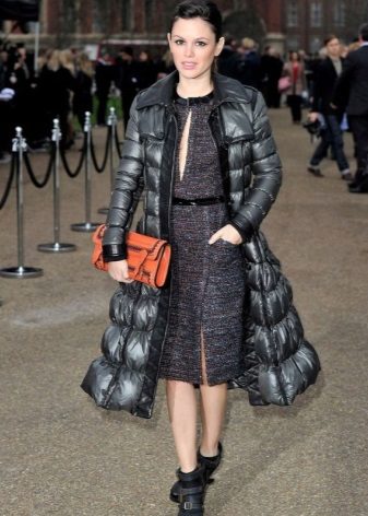 Such a coat appeared in the 80s of the last century, and its popularity continues to this day. Down jacket can look like a coat or jacket. Compared with wool coats, it is significantly lighter in weight. Under it will not be difficult to pick up the necessary accessories. Very comfortable to wear and care.