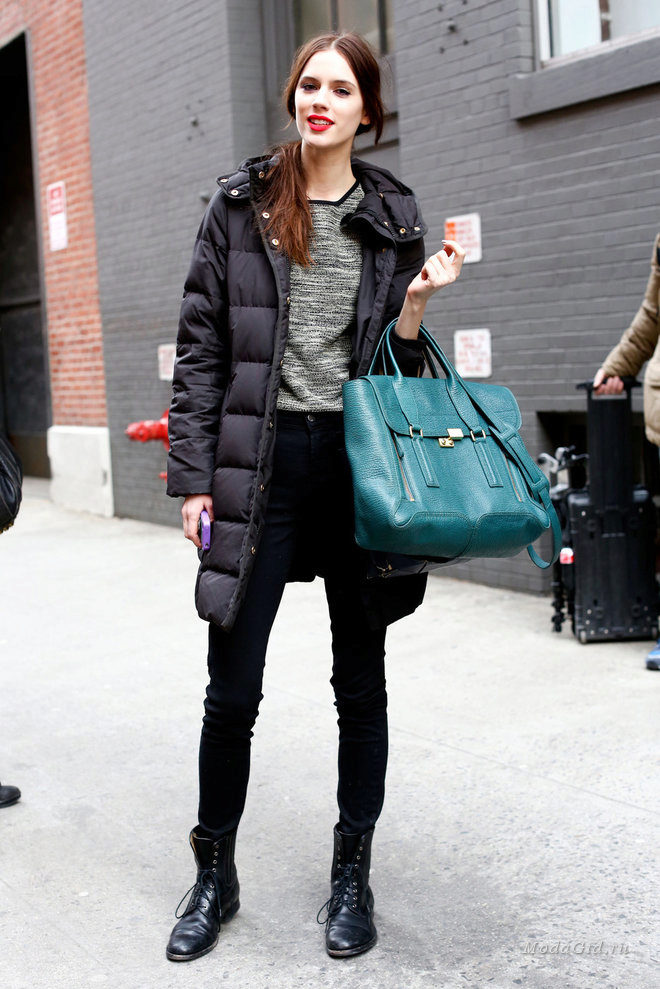 As for the bags, a very small bag is absolutely not suitable for it, or vice versa an oversized bag. The coat is still a voluminous thing, and it would be best for him to pick up a bag of a medium size sports type.