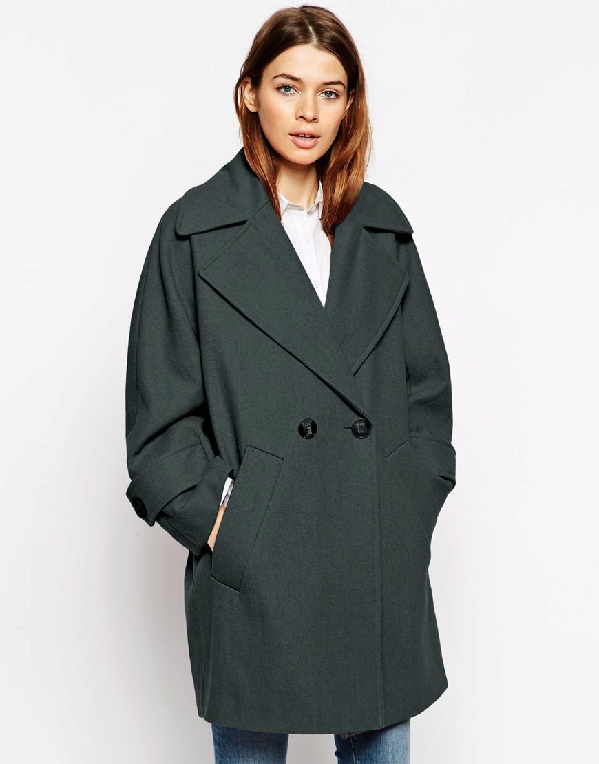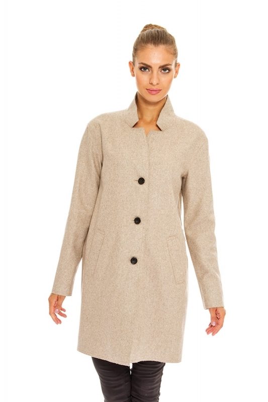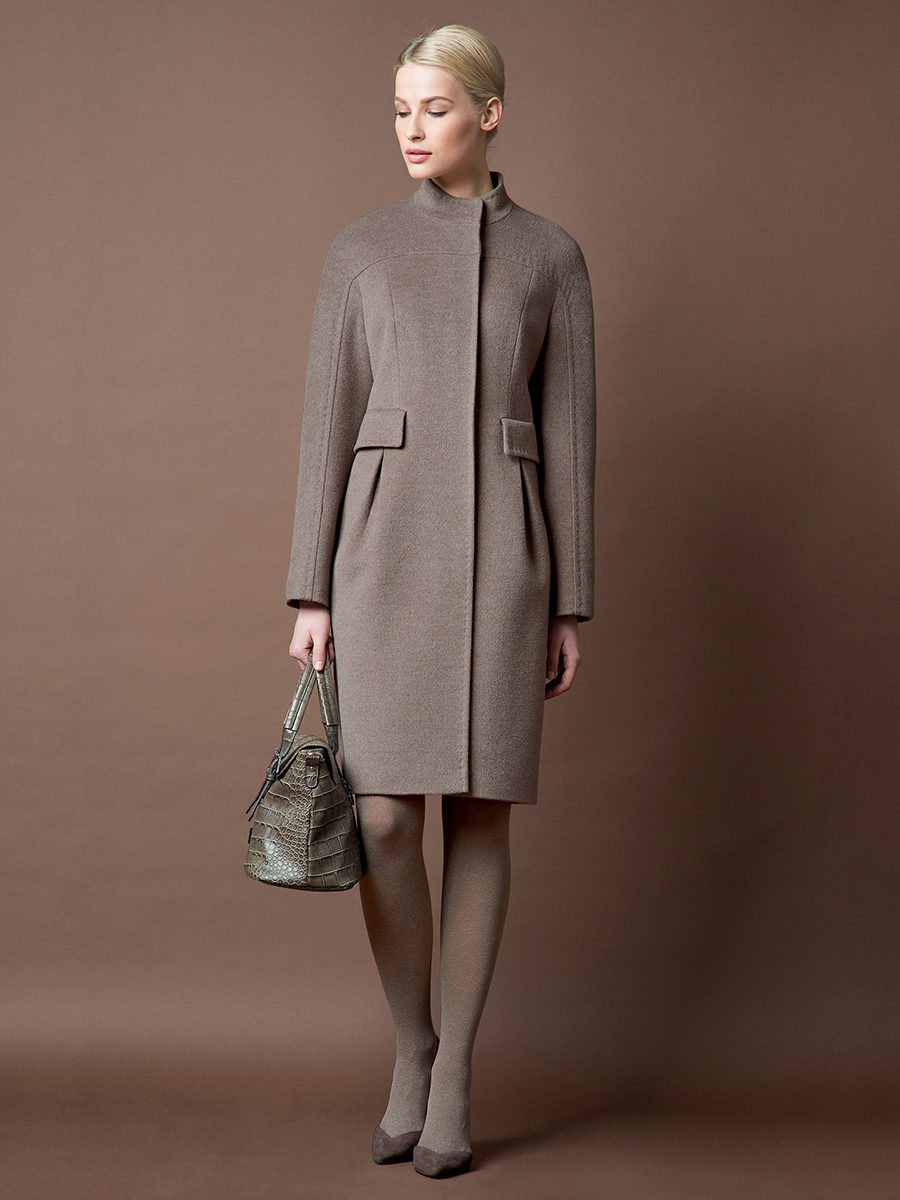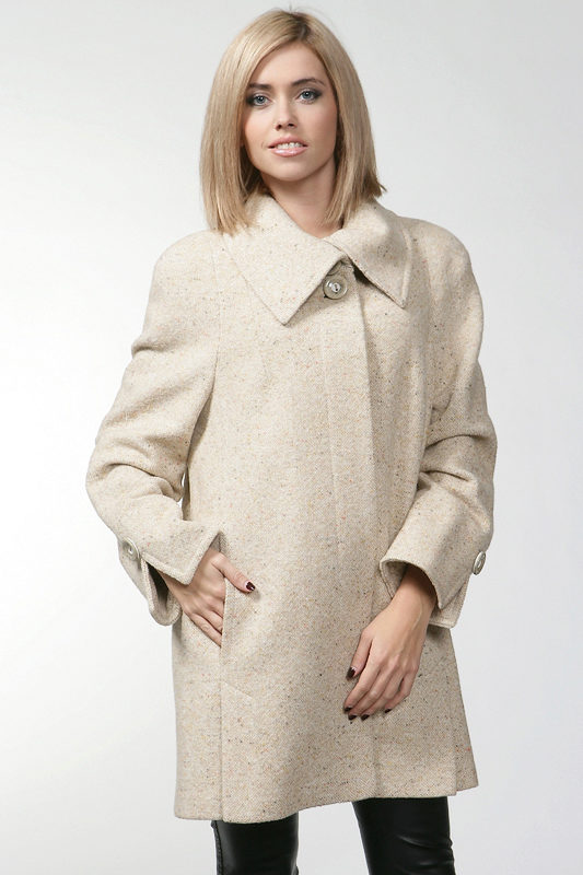 Cocoon coat - This is a concise model, wide at the top and tapering downwards. For such a coat characteristic volumetric collar of the original form and welt pockets.