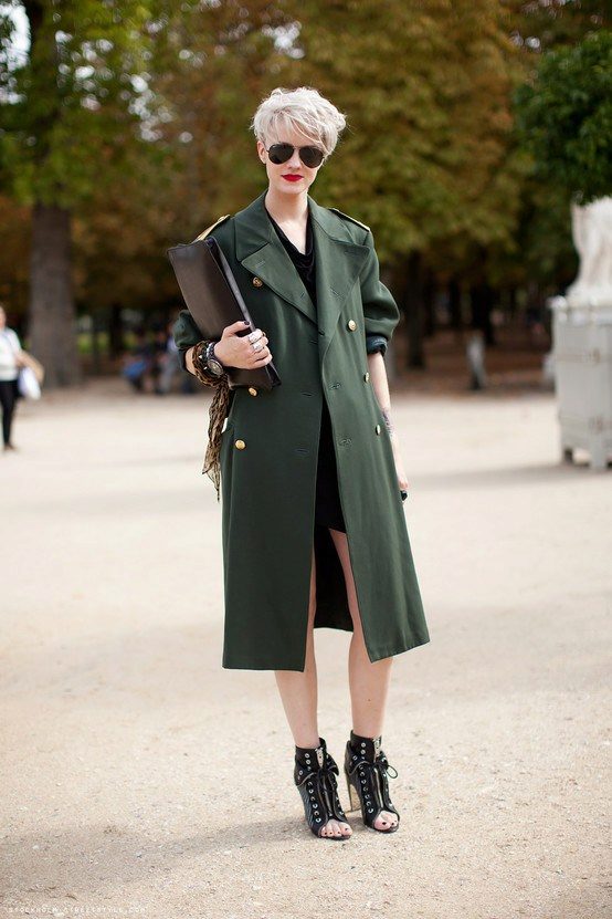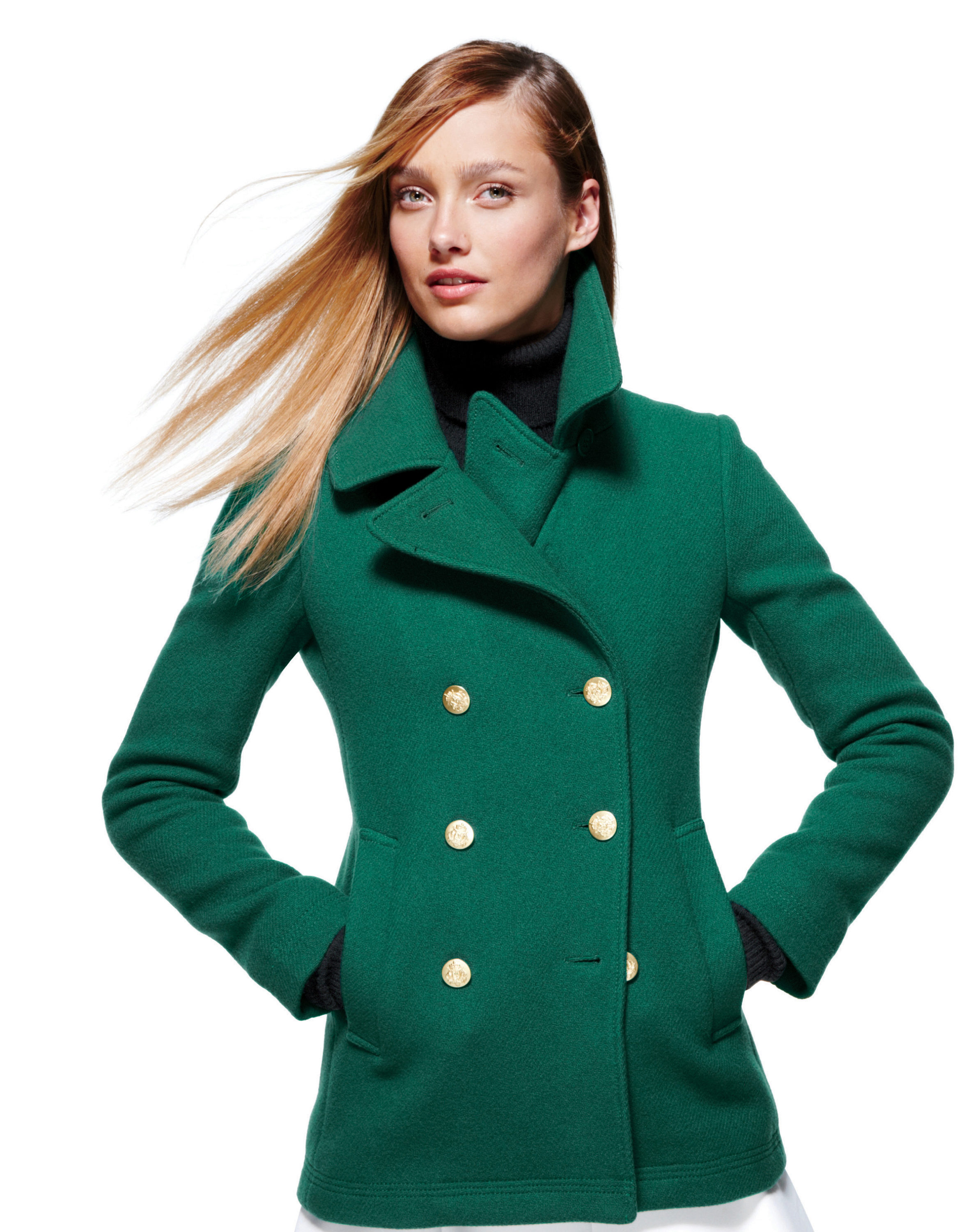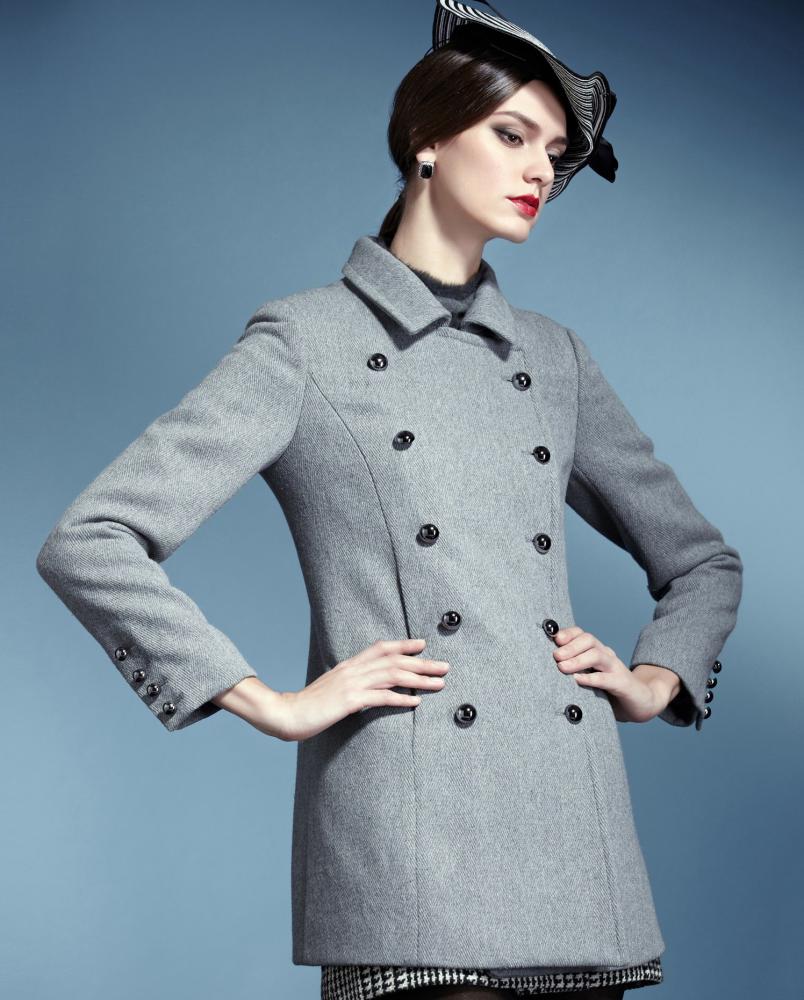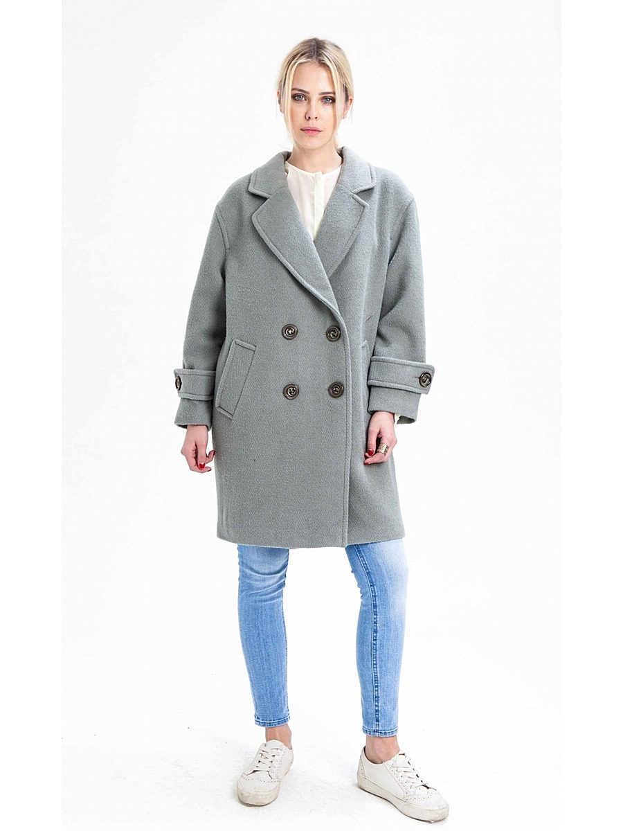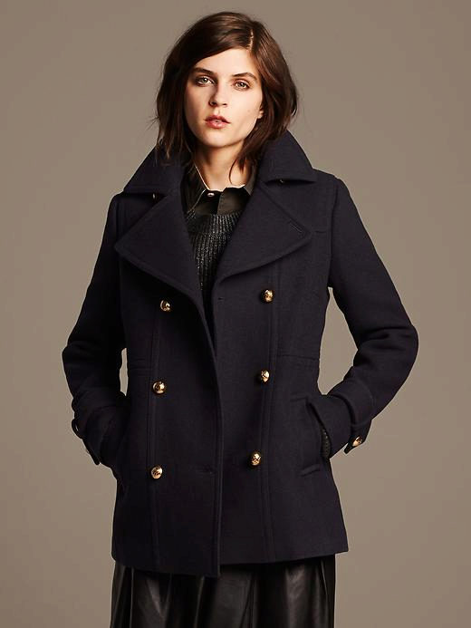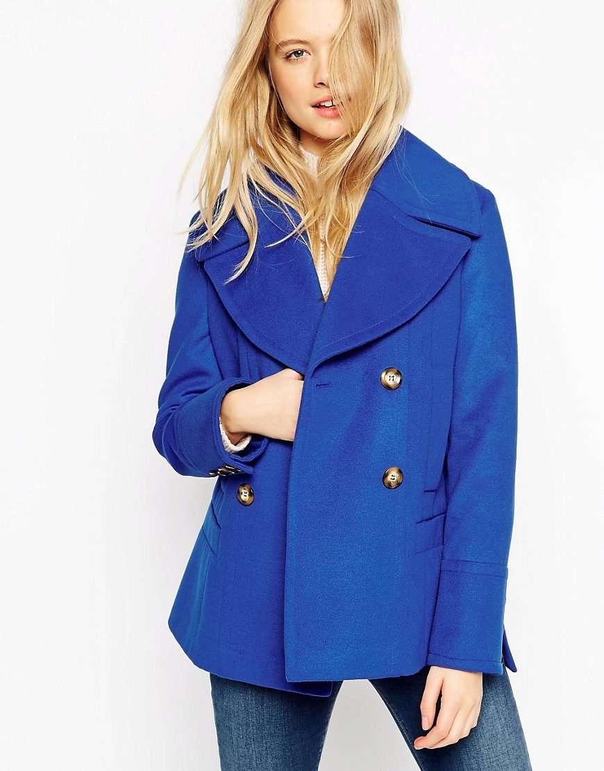 Pea coat - This is a model in military style: straight, shortened with a turn-down collar and two rows of buttons. Especially effectively this coat looks in combination with elegant, feminine outfits.