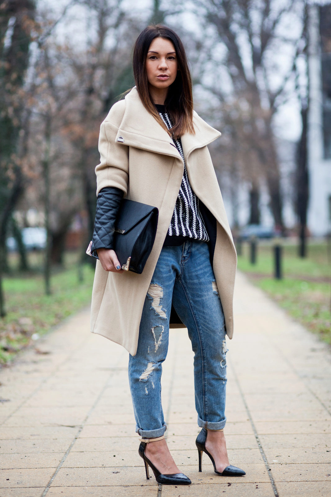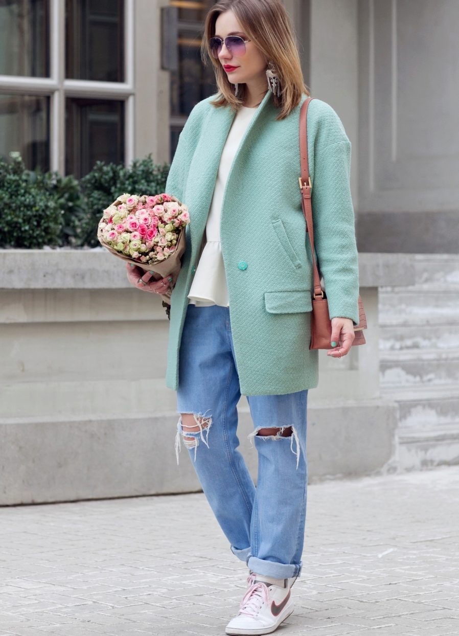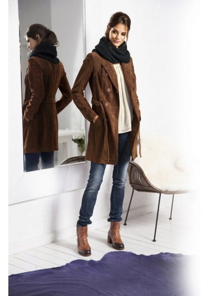 A purchase can be considered successful if it is combined with a large number of items from your wardrobe. Coats are worn with classic trousers, jeans, business dresses and skirts of different styles. Shoes should be in harmony with the coat in style, so what to wear - elegant boots with heels or coarse boots with lacing - depends on the model you choose.